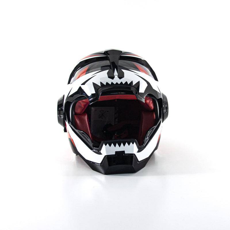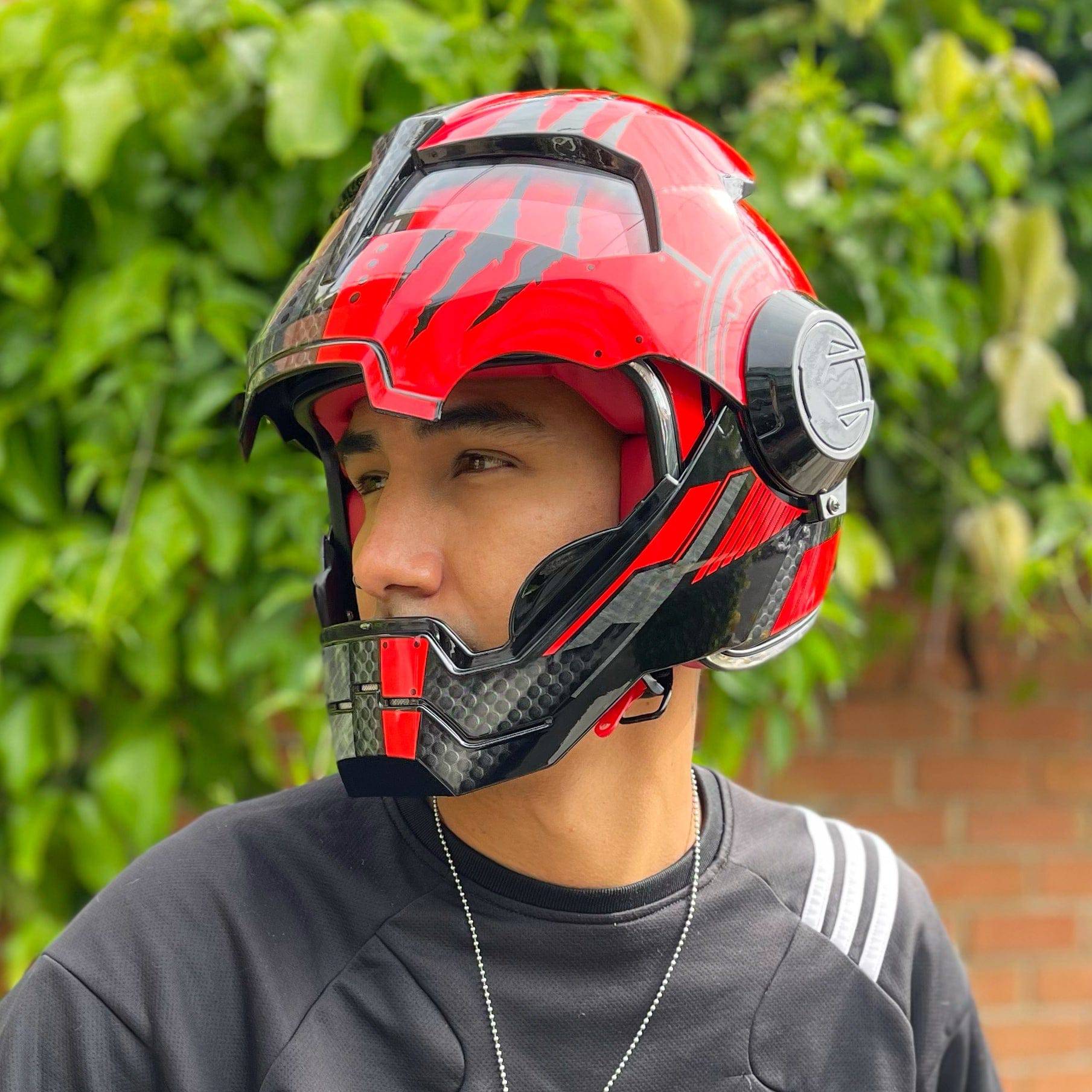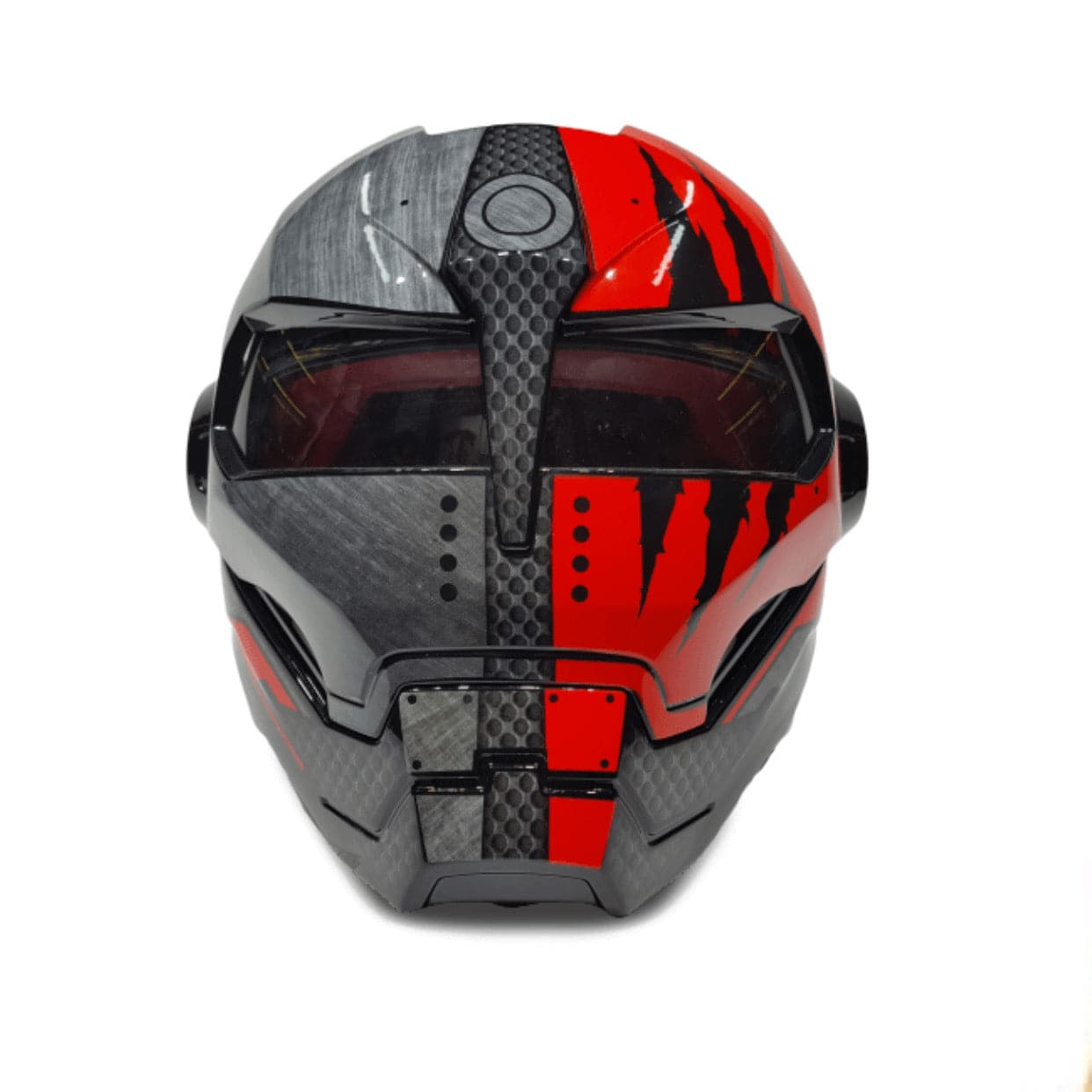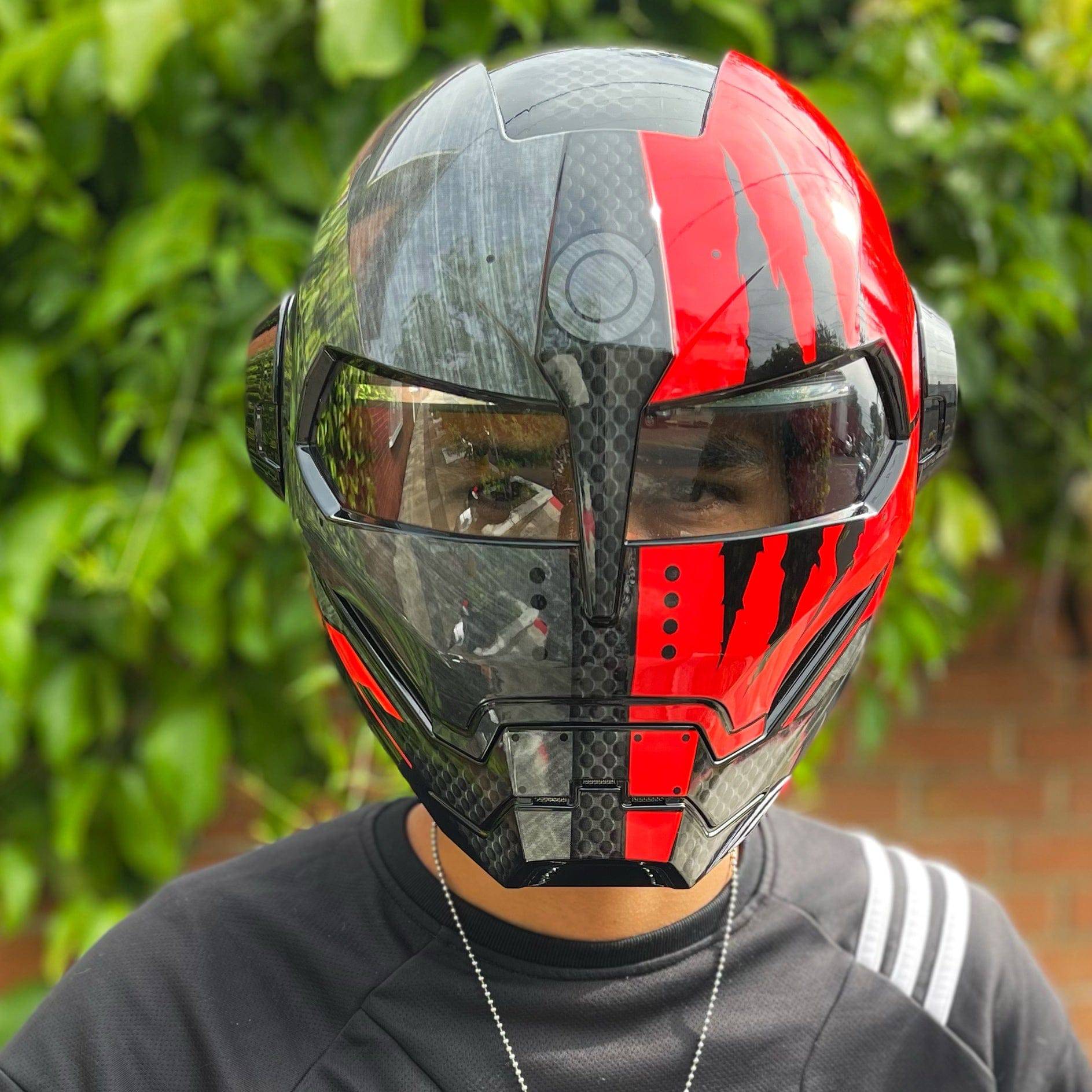 El casco de motocicleta Iron Man es perfecto para los amantes de la velocidad y la aventura. Con un amplio campo de visión y un diseño elegante, este casco te brindará la protección que necesitas mientras conduces tu moto.
