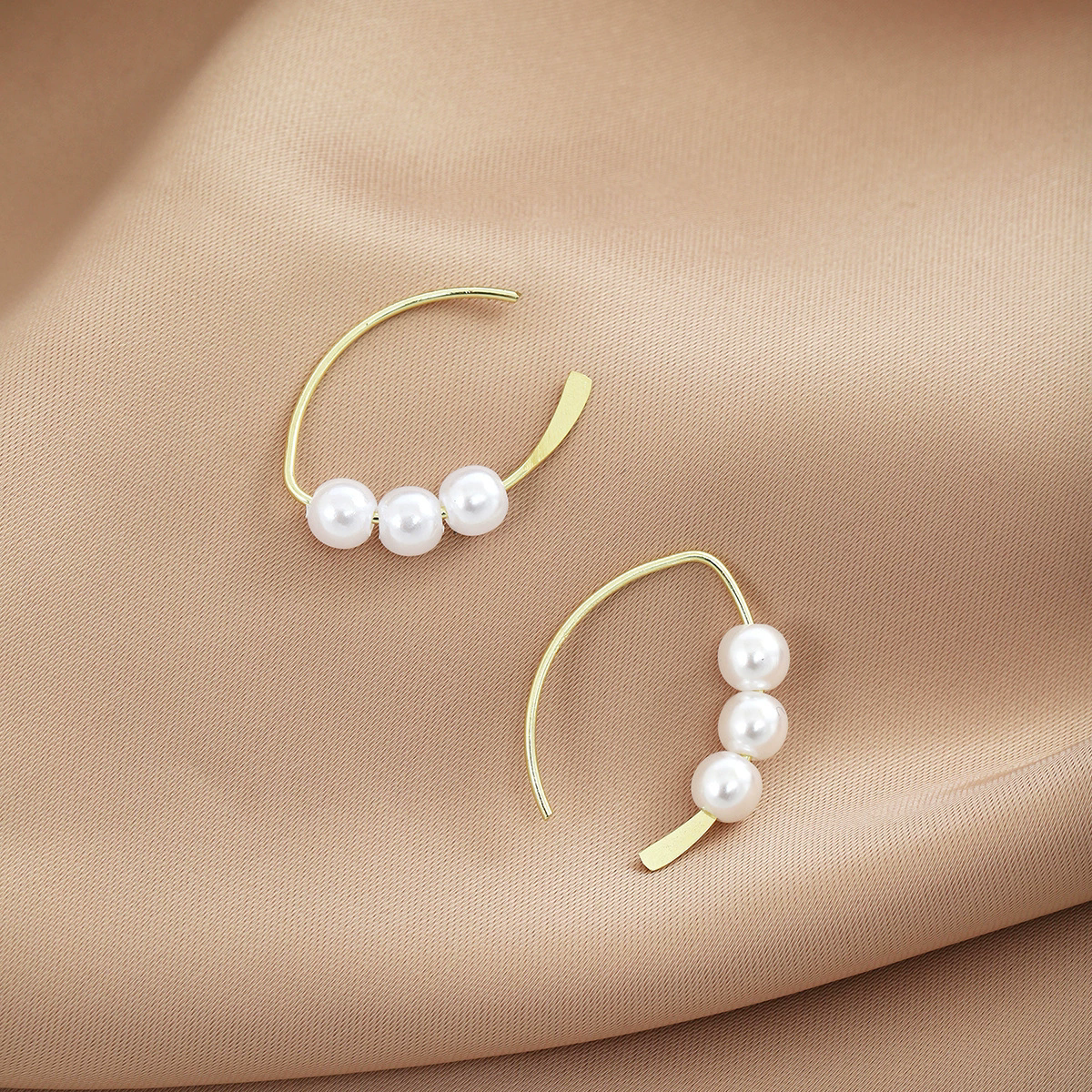 Estos aretes destacan por su diseño curvo y minimalista, combinando una base dorada delicada con perlas blancas de acabado elegante. Su forma abierta crea un efecto moderno y ligero que enmarca el rostro con sutileza, ideal para quienes aman los accesorios discretos pero sofisticados.