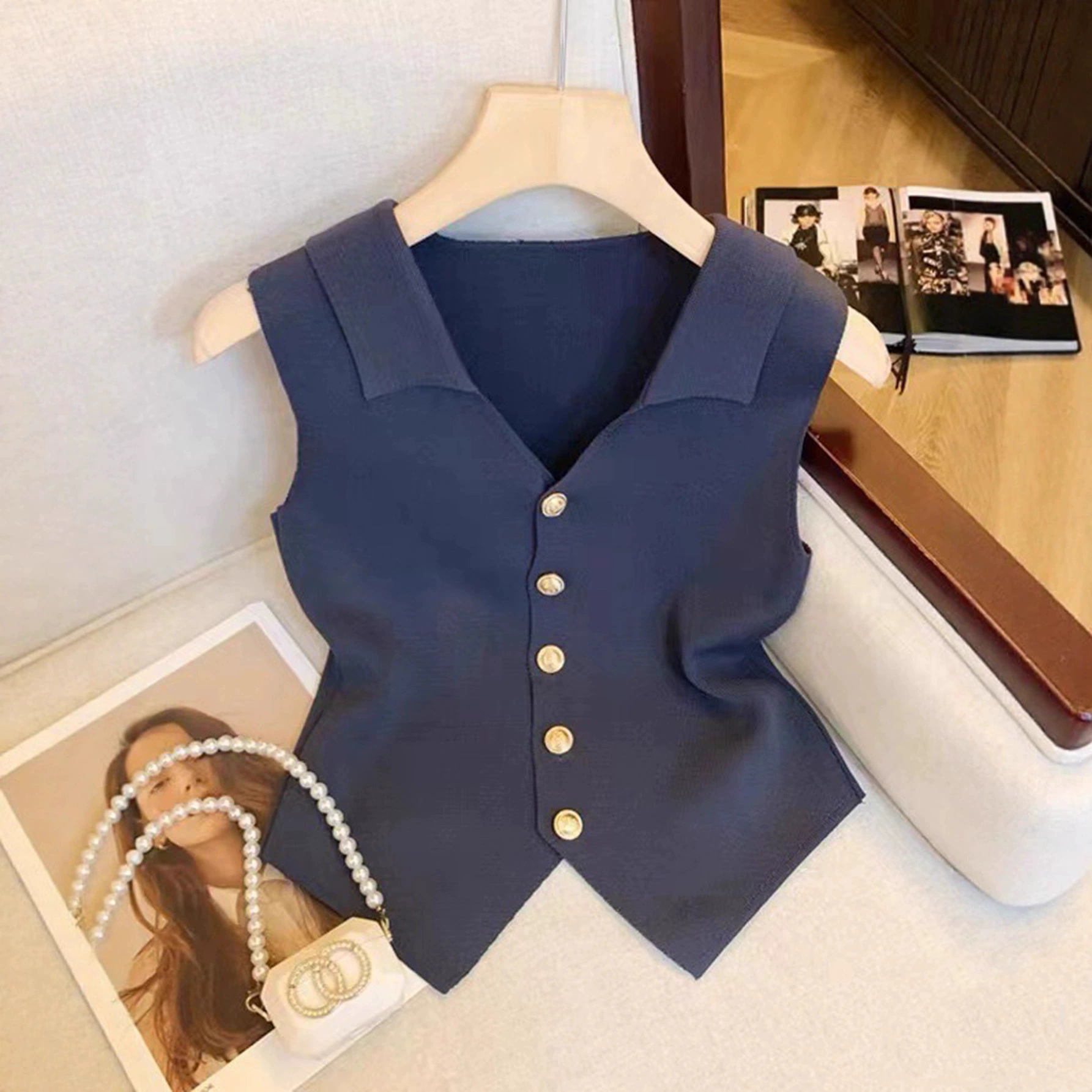 Blusa estilo chaleco con detalles dorados