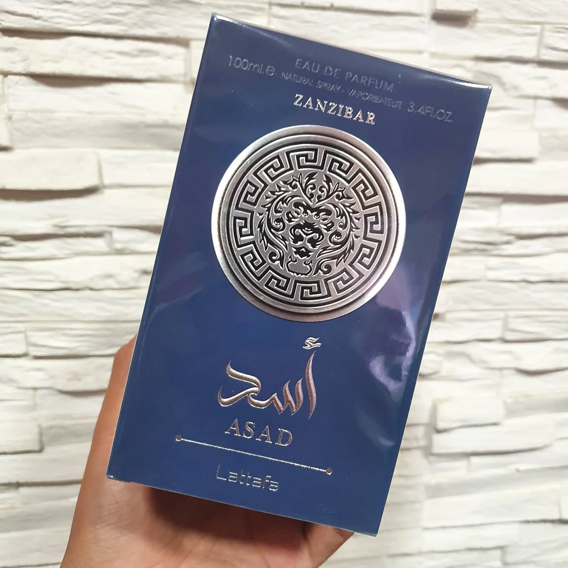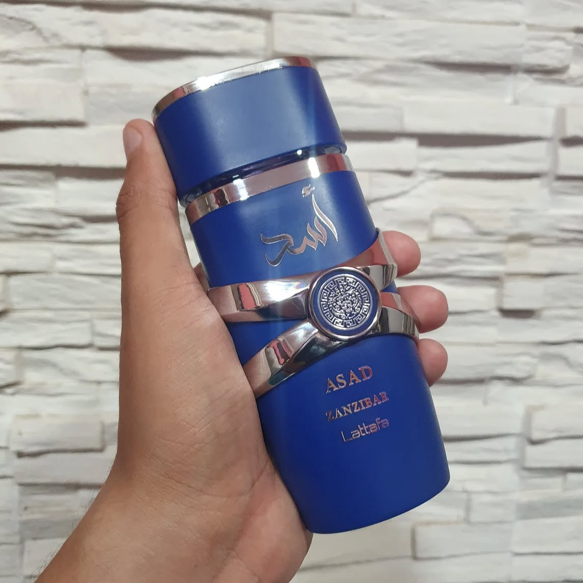 -Asad Zanzibar EDP Hombre 100 ml, es una fragancia de la familia olfativa Oriental para Hombres. Las Notas de Salida son lavanda y pimienta negra; las Notas de Corazón son Agua de coco, iris y sal; las Notas de Fondo son vainilla e incienso.