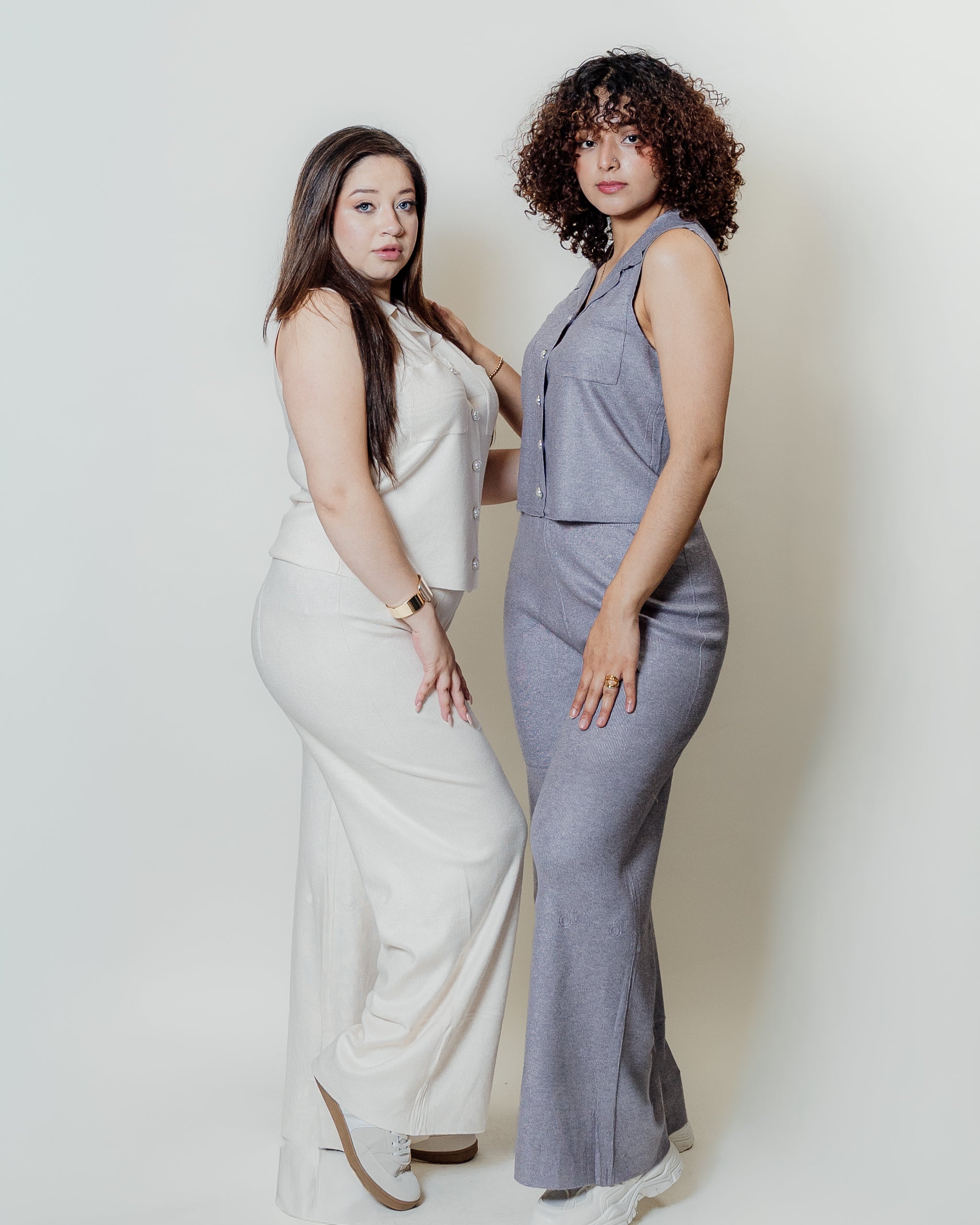 Conjunto de dos piezas tejido con estilo moderno y versátil. Ideal para crear looks casuales con un toque casual, manteniendo la comodidad durante todo el día. perfecta para cualquier temporada. blusa sin mangas