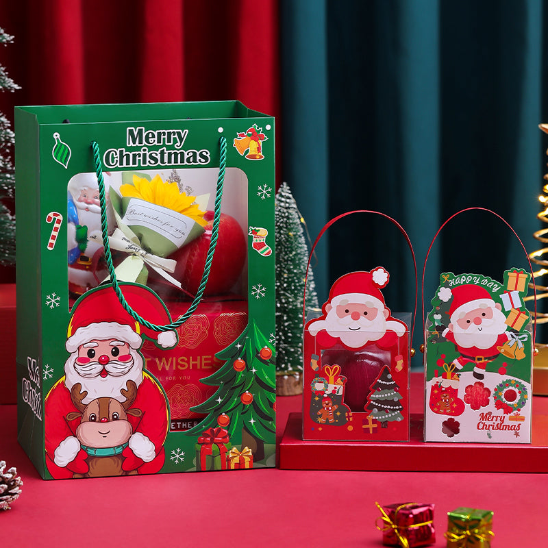 Su diseño incluye un adorable Santa Claus y una ventana frontal transparente que permite mostrar el regalo en su interior, estas bolsas son perfectas para juguetes, ropa, accesorios o detalles especiales.