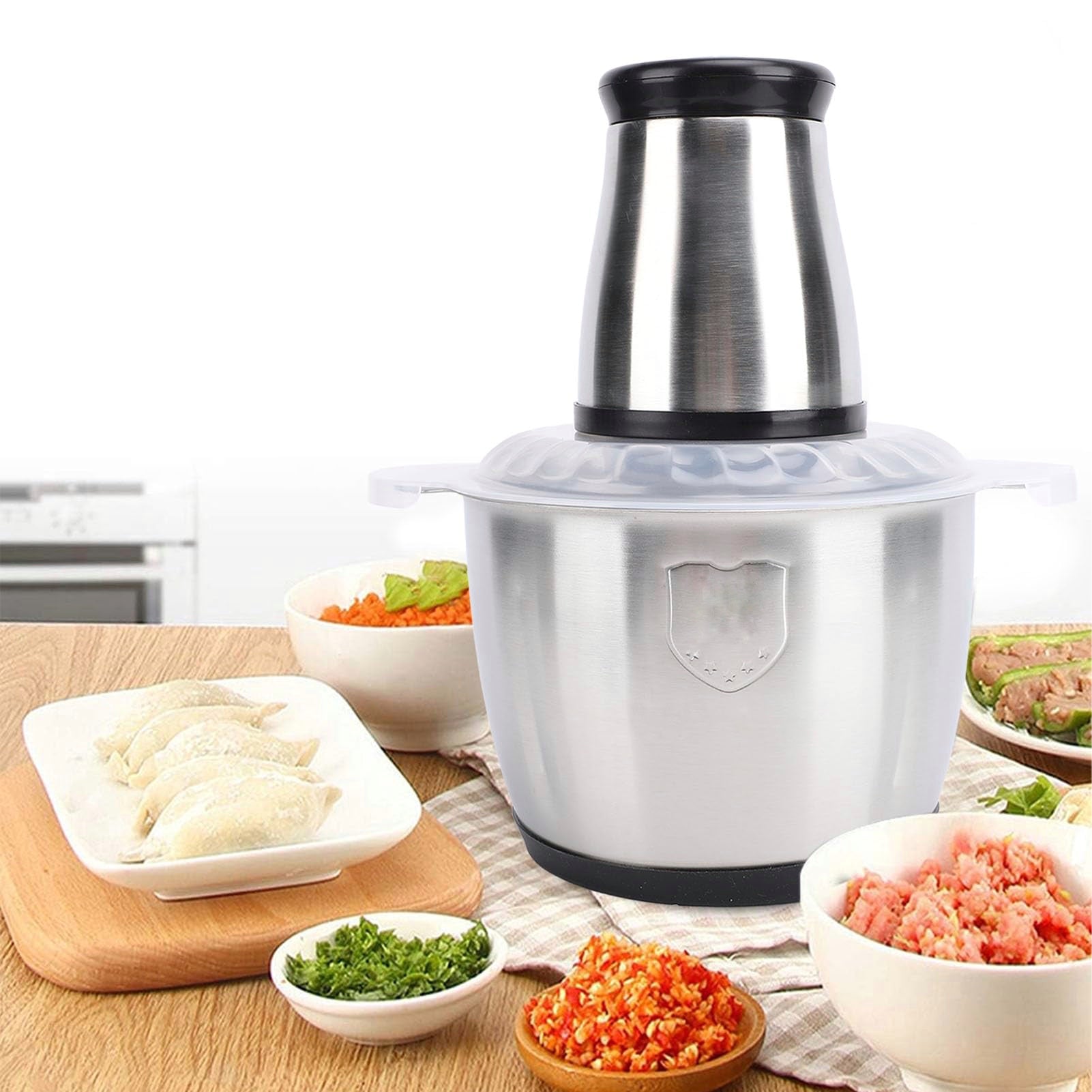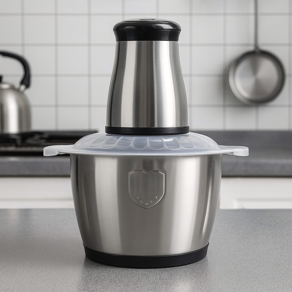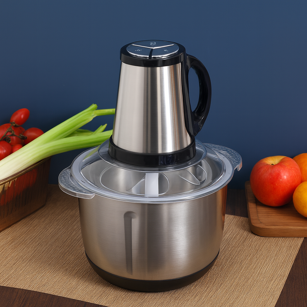 Haz tu cocina más práctica con este procesador eléctrico multifuncional de 2 Libras,  diseñado para picar, moler y triturar en segundos. Su recipiente de acero inoxidable lo hace resistente, higiénico y fácil de limpiar, ideal para el uso diario.