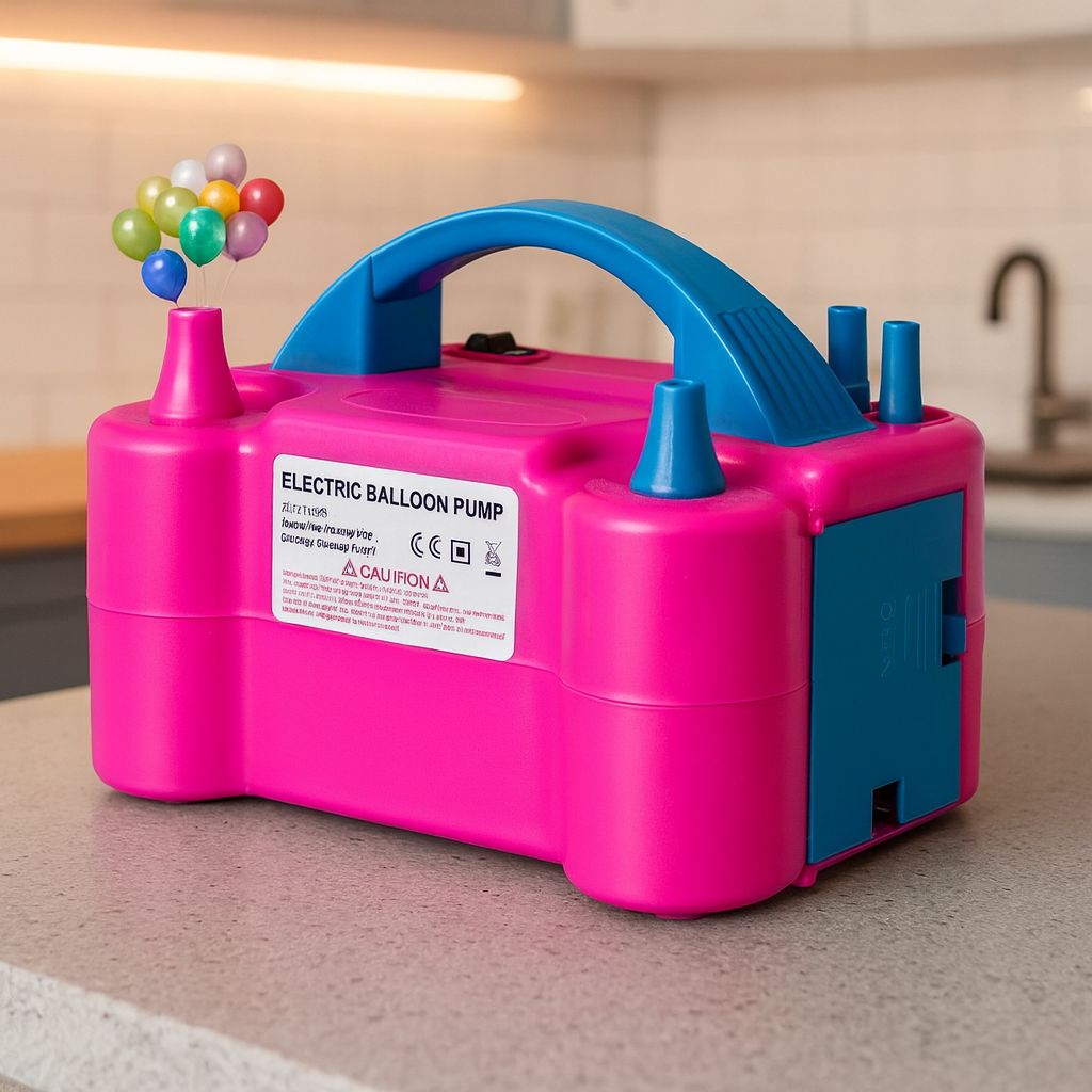 Diseñado para inflar una gran cantidad de globos rápida y fácilmente. Con el agarrador incorporado en la parte superior es fácil moverlo y transportarlo.