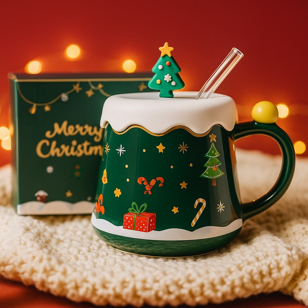 Ideal para bebidas calientes o frías, es el complemento perfecto para tu mood navideño ya sea para acompañar un chocolate caliente, tu café matutino o simplemente decorar tu espacio con ese toque festivo.