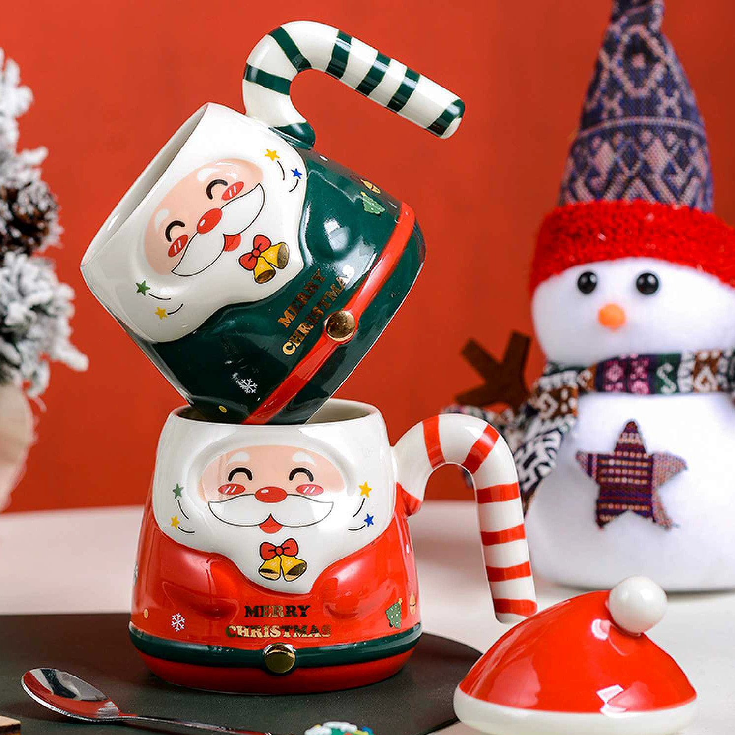 Con un diseño adorable de Santa Claus, tapa en forma de gorrito y asa tipo bastón de caramelo, esta taza es el regalo ideal para consentirte o sorprender a alguien especial.