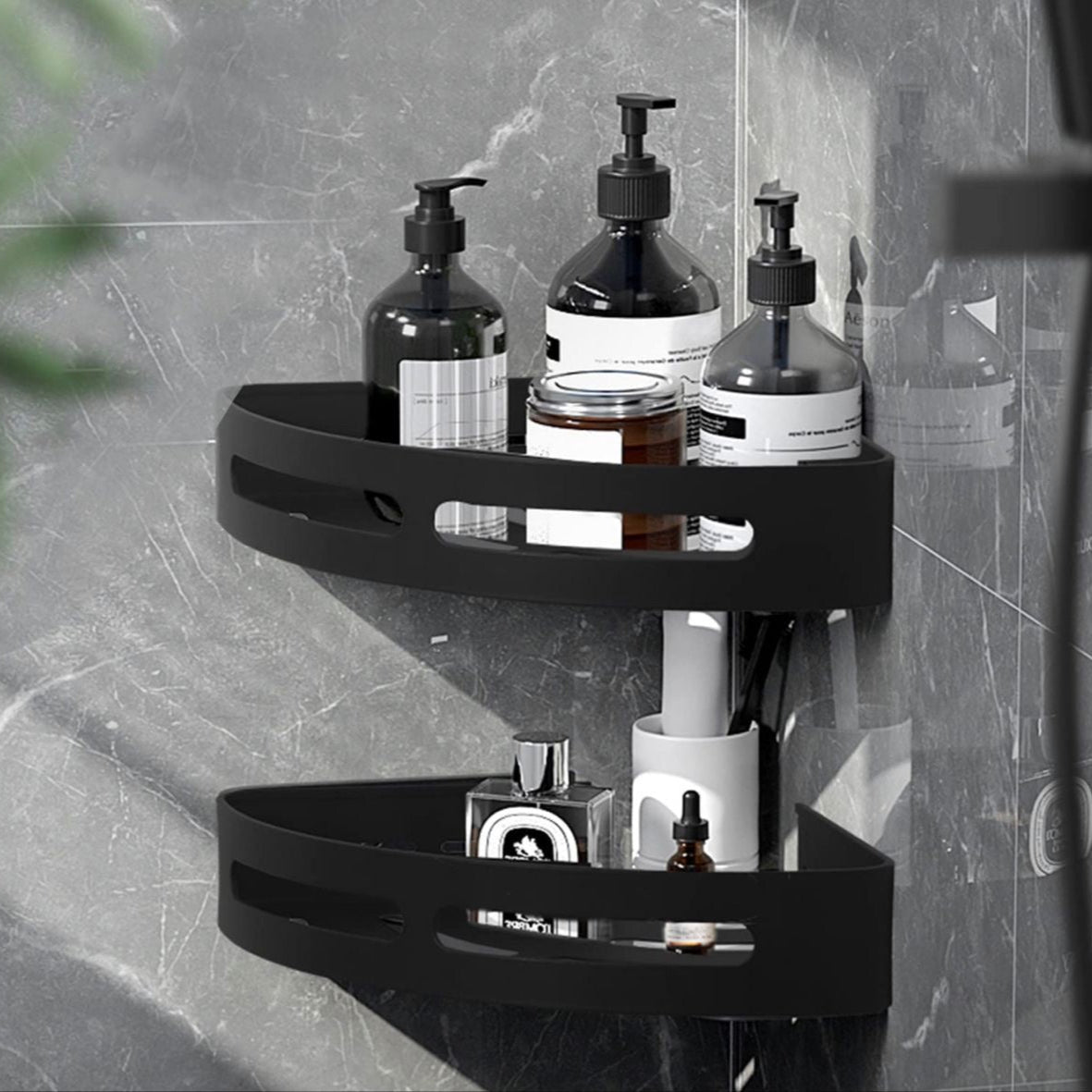 Dúo de estante de almacenamiento de esquina de color negro, es la solución perfecta para maximizar el espacio en tu hogar u oficina de una manera elegante y moderna. (Incluye 2 piezas)