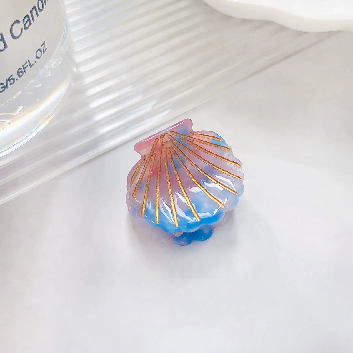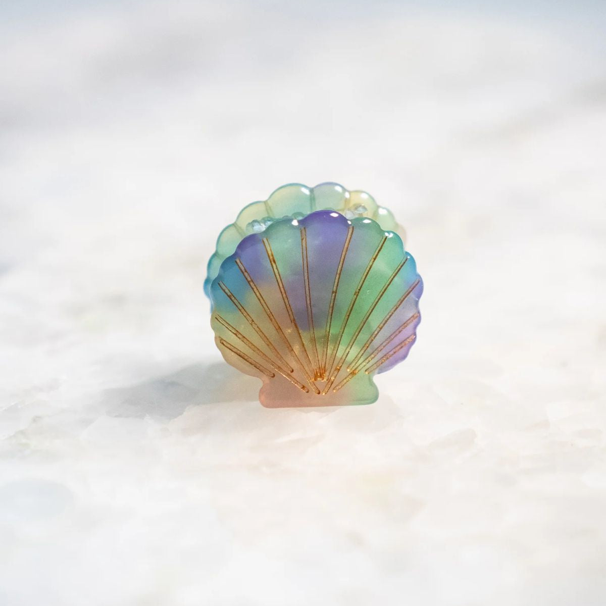 Añade un toque de fantasía marina con este gancho tipo concha, elaborado en material translúcido con delicado degradado en tonos rosa, lila y azul. Las líneas doradas realzan su diseño elegante, ideal para accesorios o simplemente decorar tu espacio con estilo.