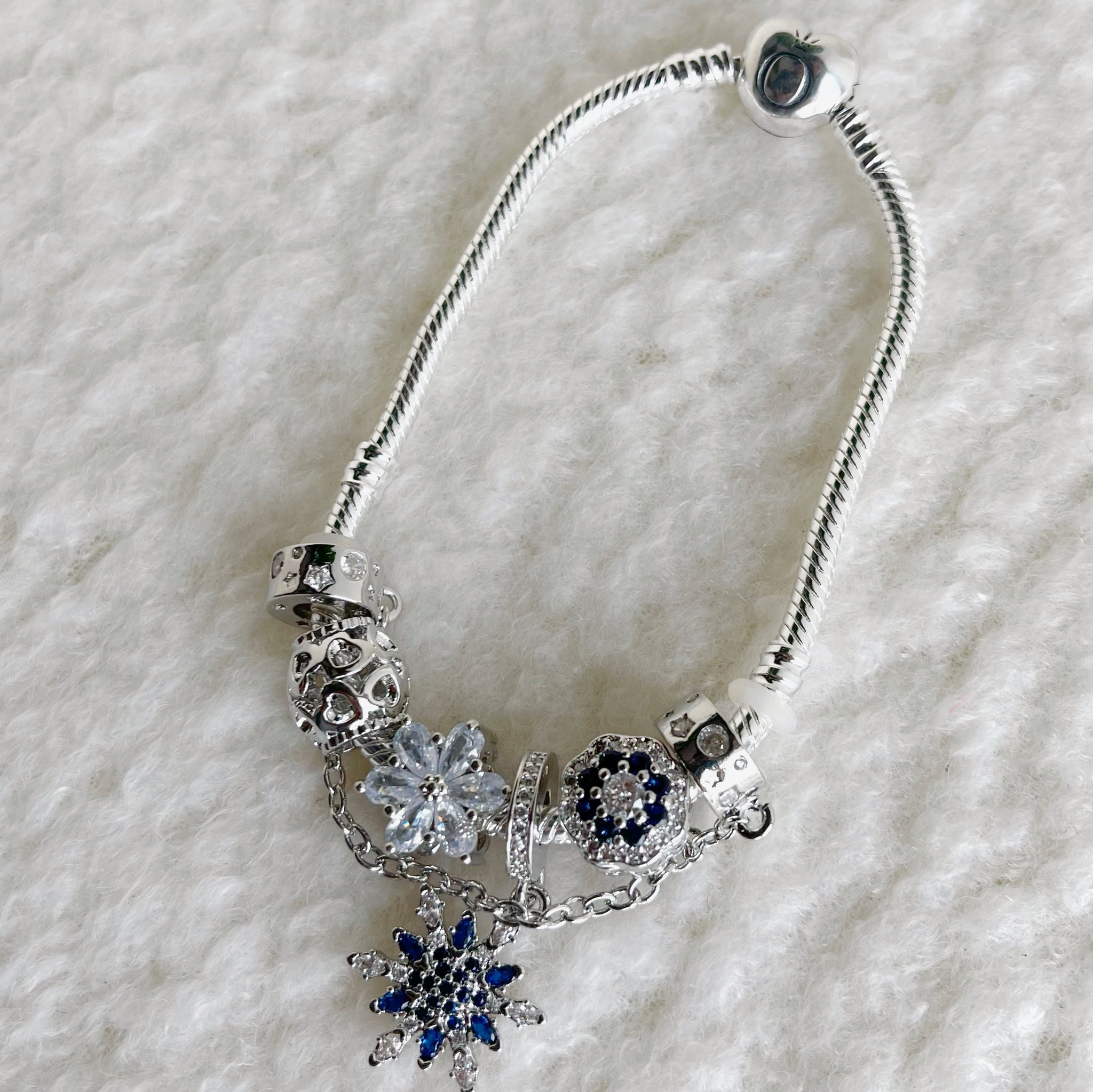 -Un toque de magia para tu muñeca. Esta pulsera con charmss combina sofisticación y encanto perfecta para regalar o complementar tu look festivo con estilo.
