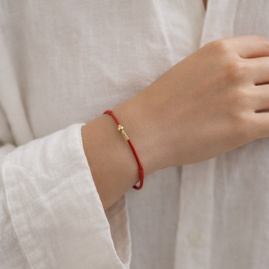 Esta pulsera de hilo rojo destaca por su diseño sencillo y atemporal, ideal para llevar todos los días. Su estilo minimalista la convierte en un accesorio discreto pero significativo, perfecto para combinar con cualquier outfit, desde looks casuales hasta estilos más delicados.