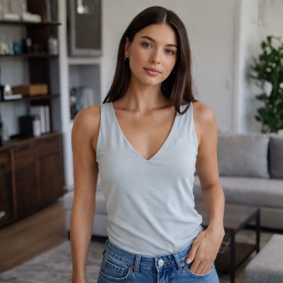 Este body en tono verde menta combina un diseño limpio con un fit favorecedor que estiliza la silueta al instante. Su escote en V y acabado liso lo convierten en un básico elegante, perfecto para crear outfits desde los más casuales hasta looks más pulidos.