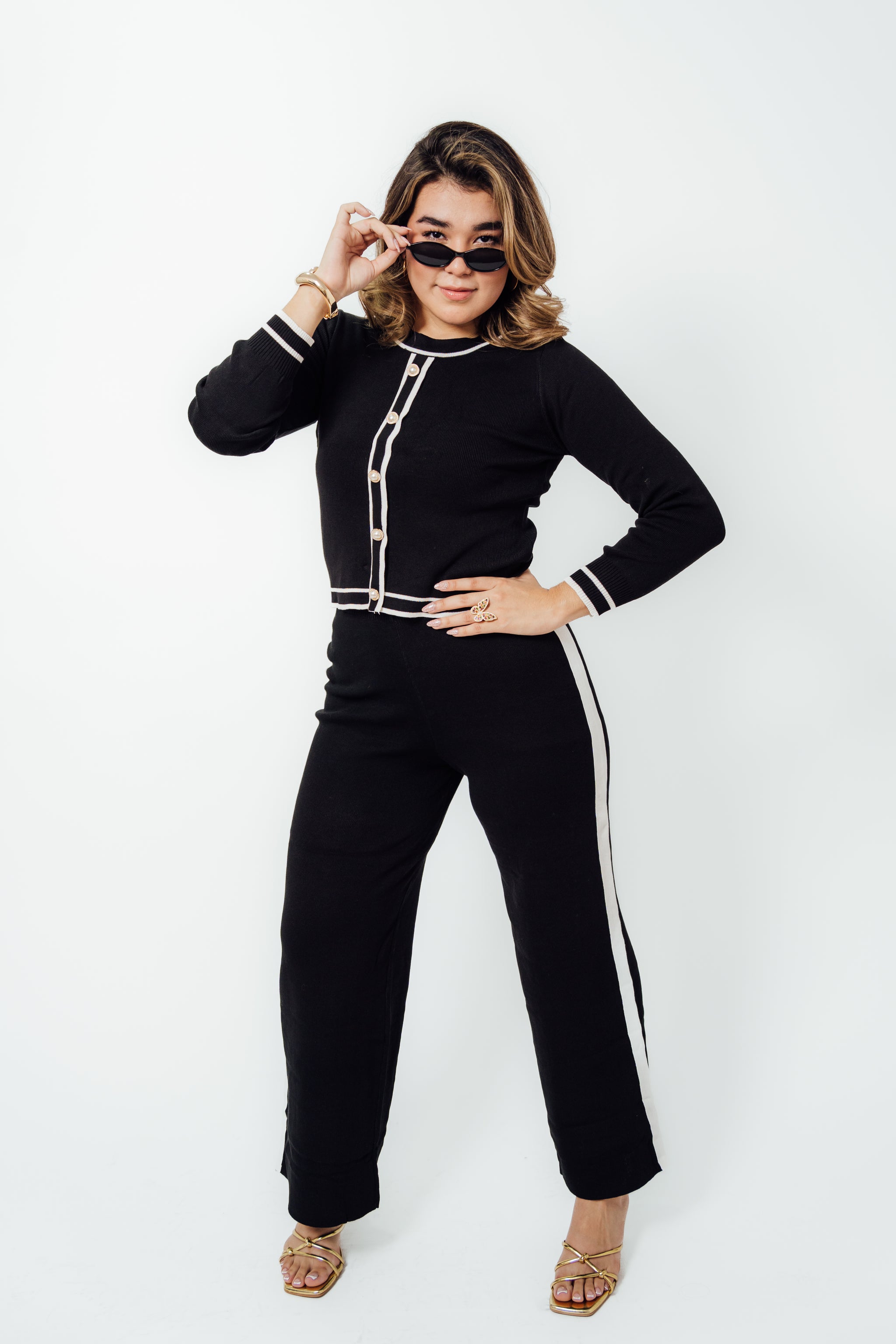 Conjunto de dos piezas tejido con estilo moderno y versátil. Ideal para crear looks casuales con un toque chic, manteniendo la comodidad durante todo el día.