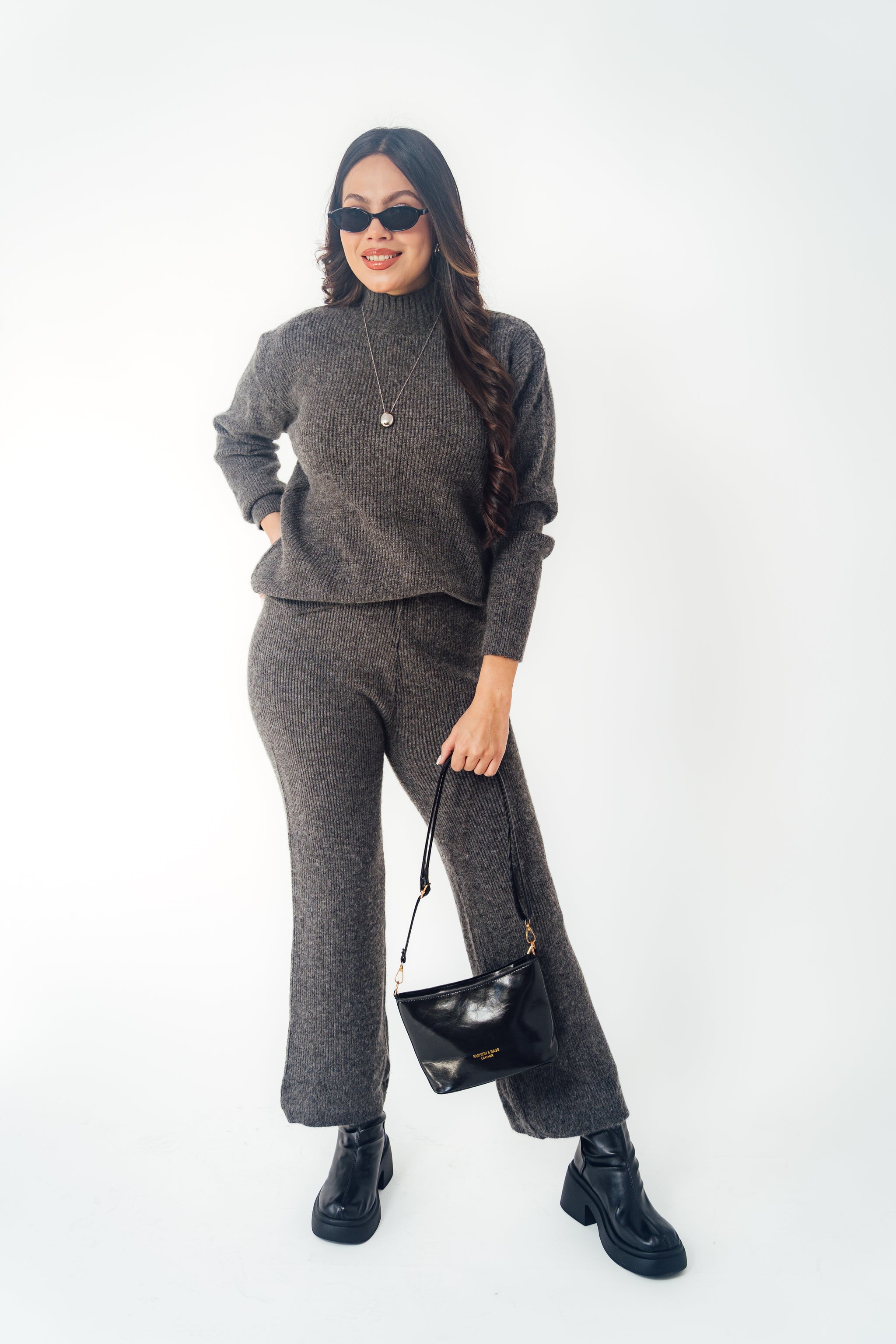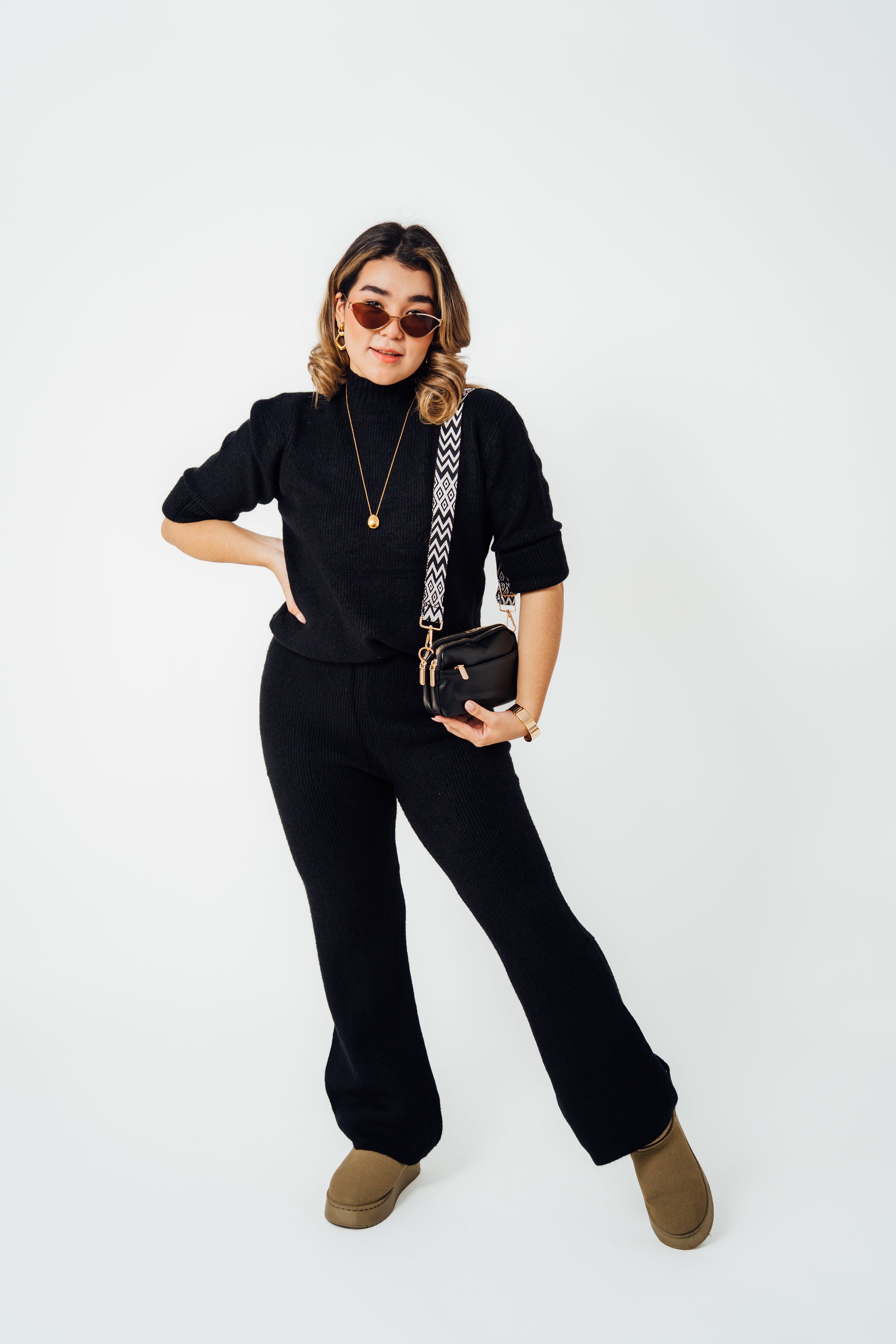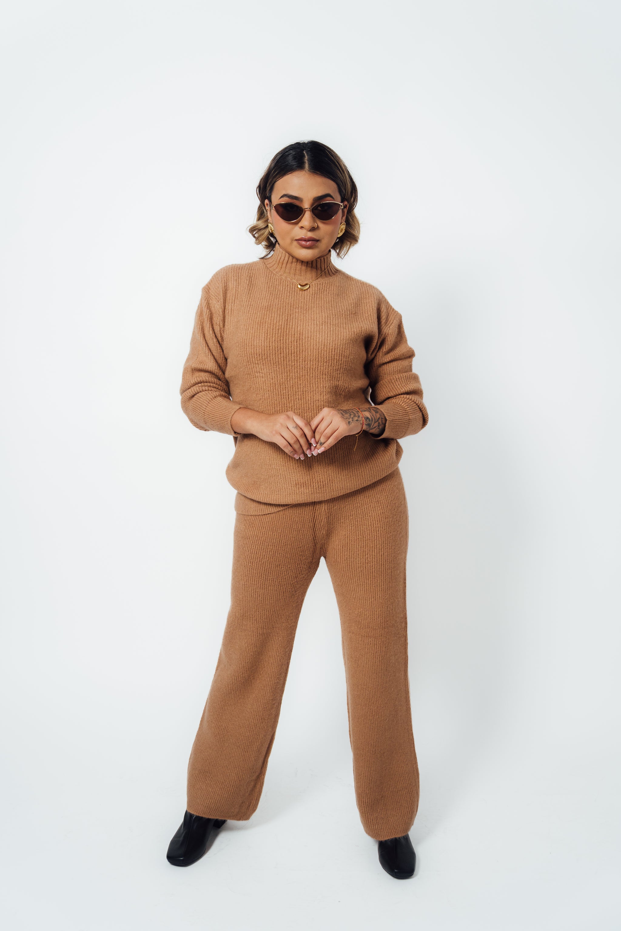 Conjunto de dos piezas tejido con estilo moderno y versátil. Ideal para crear looks casuales con un toque chic, manteniendo la comodidad durante todo el día. Incluye blusa de cuello y manga larga