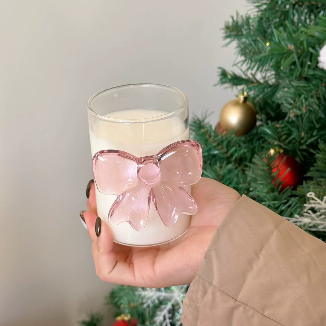 Agrega un toque coquette a tu rutina diaria con este hermoso vaso de vidrio con moño rosa.