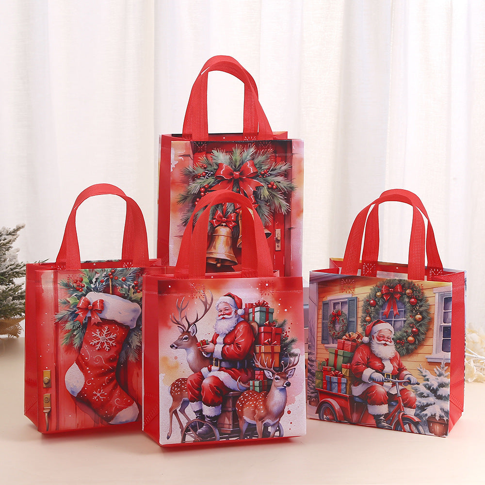 Haz que tus regalos brillen esta Navidad con nuestra bolsa navideña reutilizable con diseños festivos. Su tamaño práctico y resistente es ideal para envolver obsequios sin complicaciones, además de poder usarse una y otra vez durante la temporada.