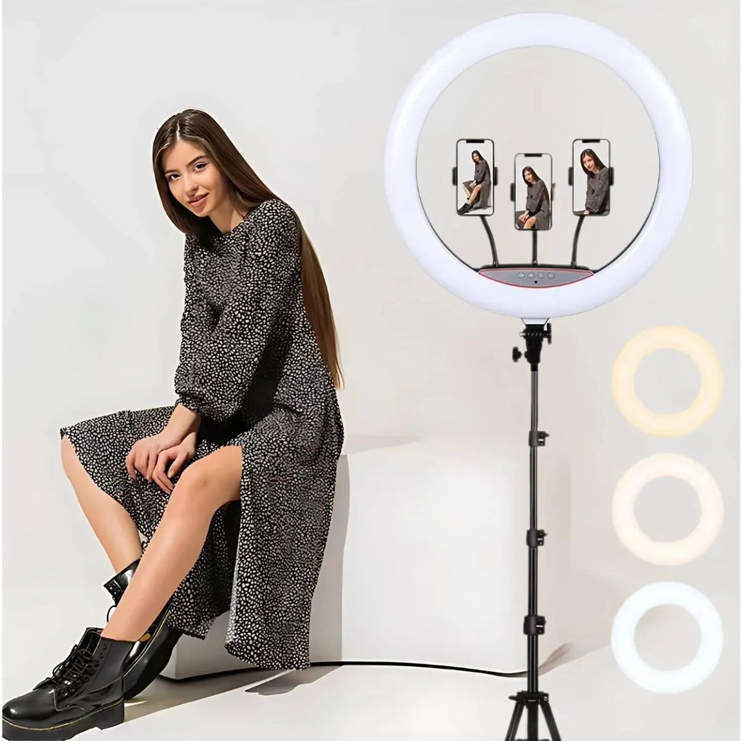 El Aro de Luz LED RGB Profesional es la herramienta ideal para elevar la calidad de tus fotos, videos y transmisiones en vivo. Diseñado con iluminación multicolor RGB y ajuste de temperatura (cálida, neutra y fría), permite personalizar completamente el ambiente de grabación gracias a su sistema de regulación continua de brillo.