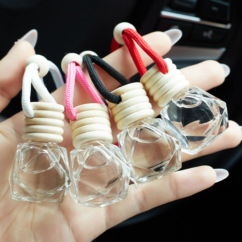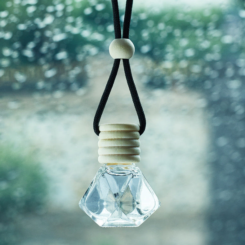 El aromatizante para carro combina diseño elegante y fragancia duradera en un formato compacto y decorativo. Su frasco de vidrio con forma geométrica tipo diamante aporta un toque sofisticado al interior del vehículo, mientras su tapa de madera natural permite una difusión gradual del aroma.