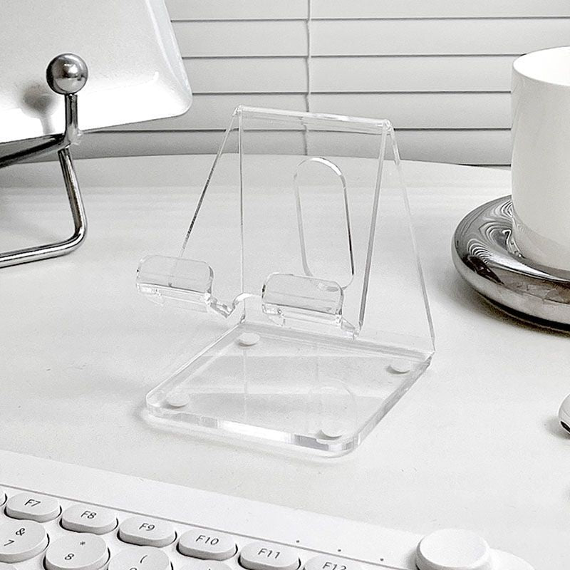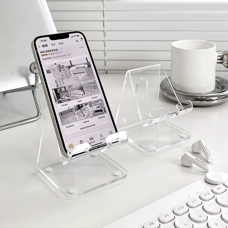 Organiza tu espacio con estilo gracias a esta base acrílica transparente, ideal para sostener tu celular o tablet mientras trabajas, estudias o disfrutas contenido. Su diseño inclinado permite una visualización cómoda, mientras que las ranuras inferiores facilitan la gestión de cables.