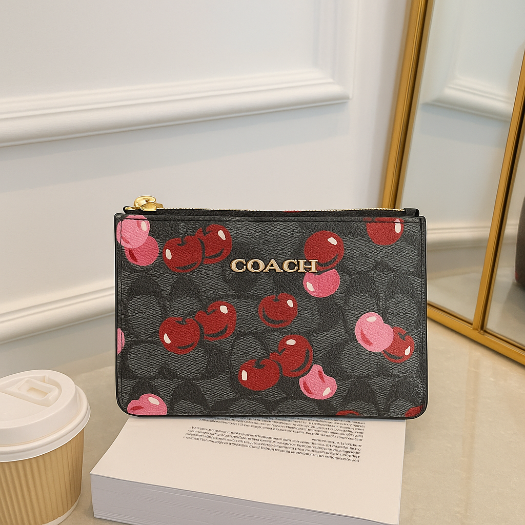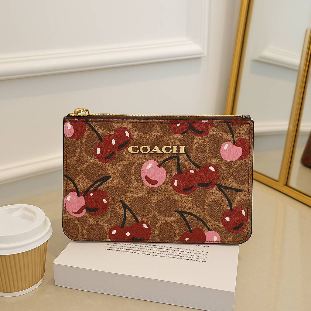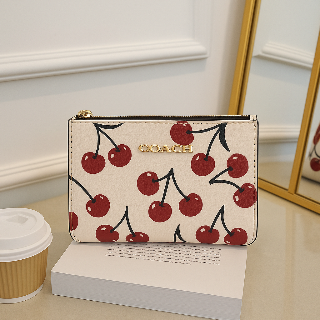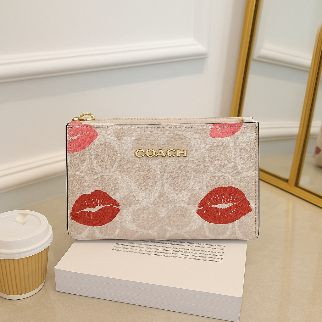 Añade un toque coqueto y divertido a tu look con esta cartera tipo wristlet inspirada en los diseños más icónicos de la temporada. Su exterior con estampado vibrante la convierte en una pieza protagonista que eleva cualquier outfit. Perfecta para quienes aman lo práctico sin perder estilo.