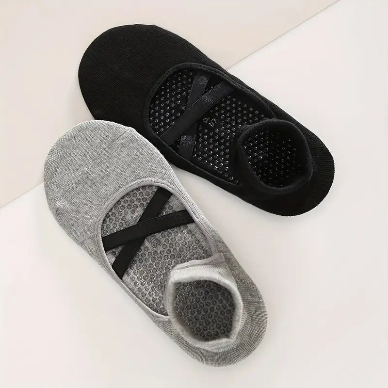 Las calcetas antideslizantes cruzadas están diseñadas para brindar estabilidad, comodidad y estilo durante tus entrenamientos o actividades en casa. Su diseño tipo ballet con tiras cruzadas en el empeine proporciona mejor ajuste y sujeción, evitando que se deslicen mientras te mueves.