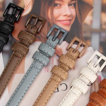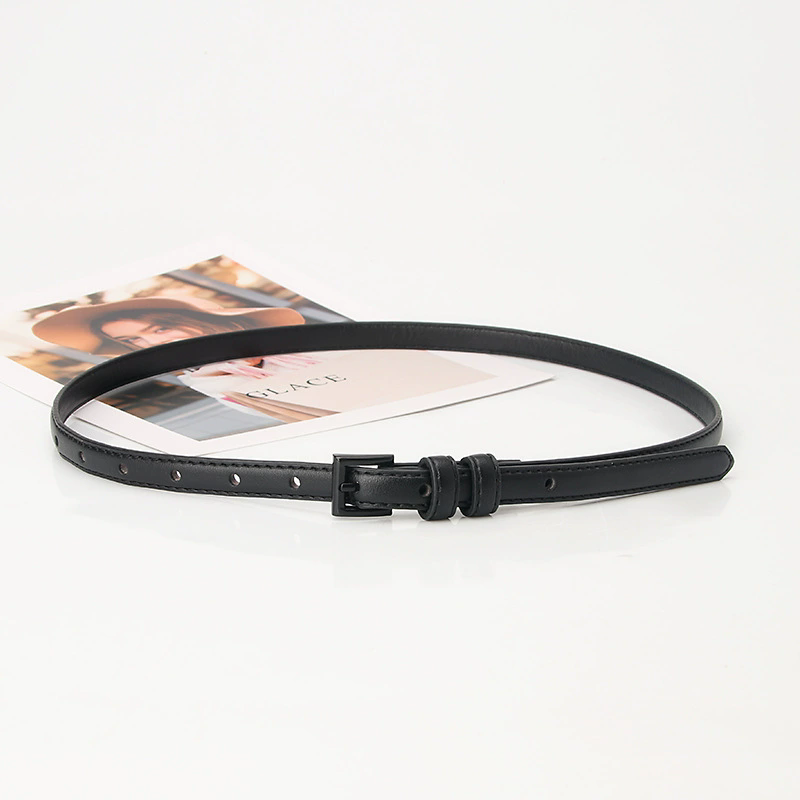 Este cinturón delgado de cuero sintético es el toque perfecto para realzar tu cintura y completar cualquier look con estilo. Su diseño minimalista con hebilla metálica rectangular lo convierte en un básico elegante, ideal tanto para outfits casuales como más formales.
