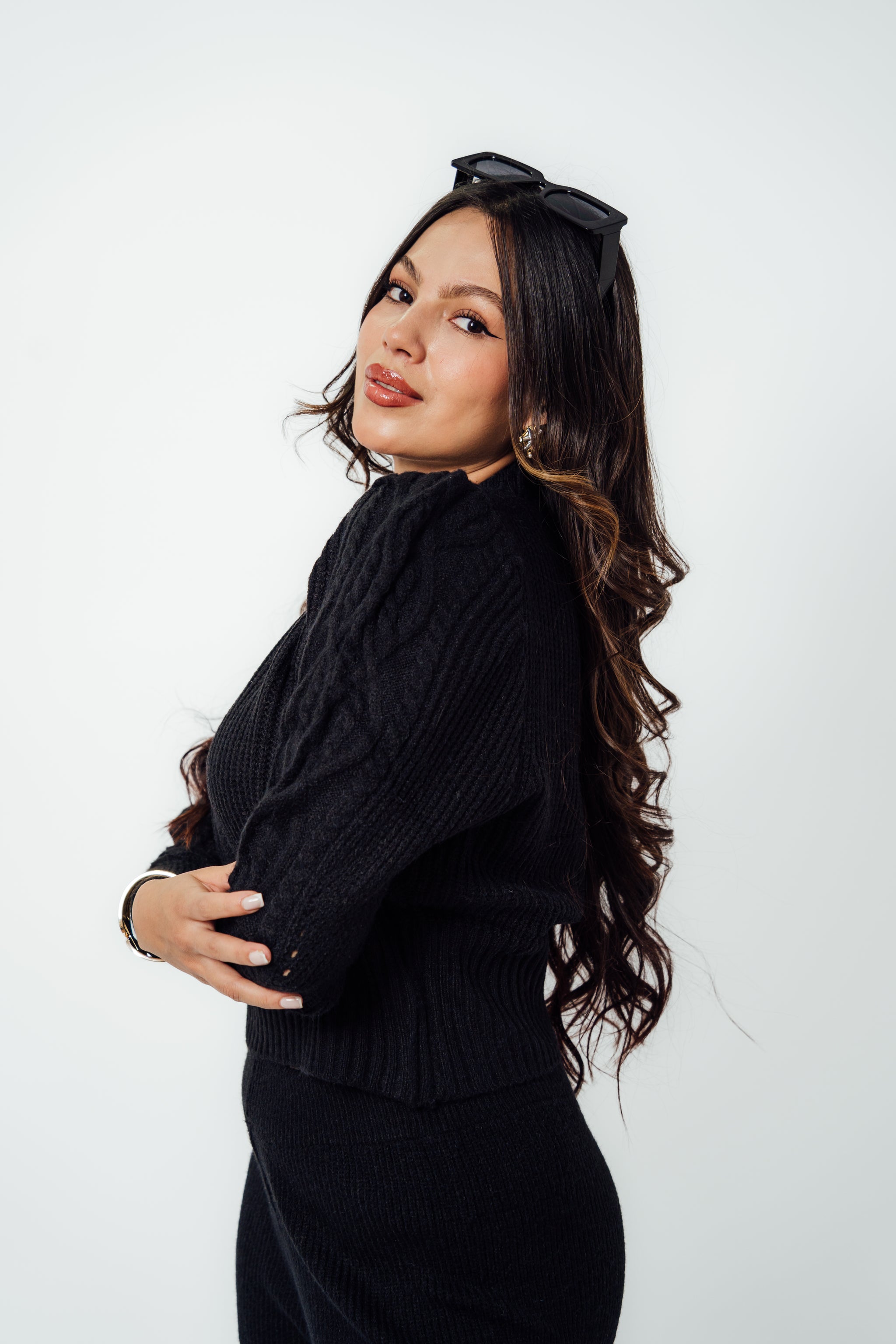 Conjunto de dos piezas tejido con estilo moderno y versátil. Ideal para crear looks casuales con un toque chic, manteniendo la comodidad durante todo el día.