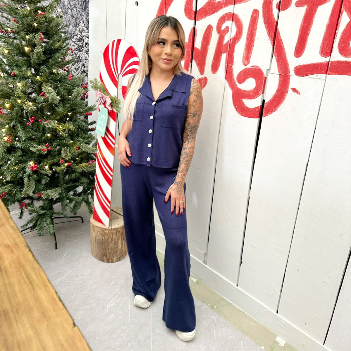 Conjunto de dos piezas tejido con estilo moderno y versátil. Ideal para crear looks casuales con un toque casual, manteniendo la comodidad durante todo el día. perfecta para cualquier temporada. blusa sin mangas