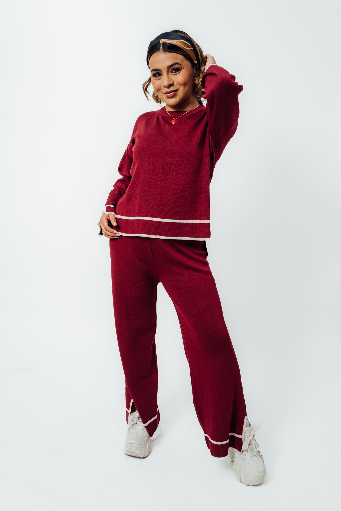 Conjunto de dos piezas tejido con estilo moderno y versátil. Ideal para crear looks casuales, manteniendo la comodidad durante todo el día. Incluye un suéter de manga larga y pantalón amplio, ideal para un look casual, relajado o chic en cualquier ocasión.
