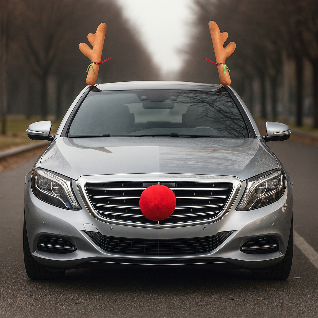 Convierte tu carro en el trineo más divertido con este kit navideño para auto con cuernos de reno y nariz. Incluye dos astas con cascabeles y una nariz. Es fácil de instalar y no daña el auto, ya que cuenta con sujetadores seguros.