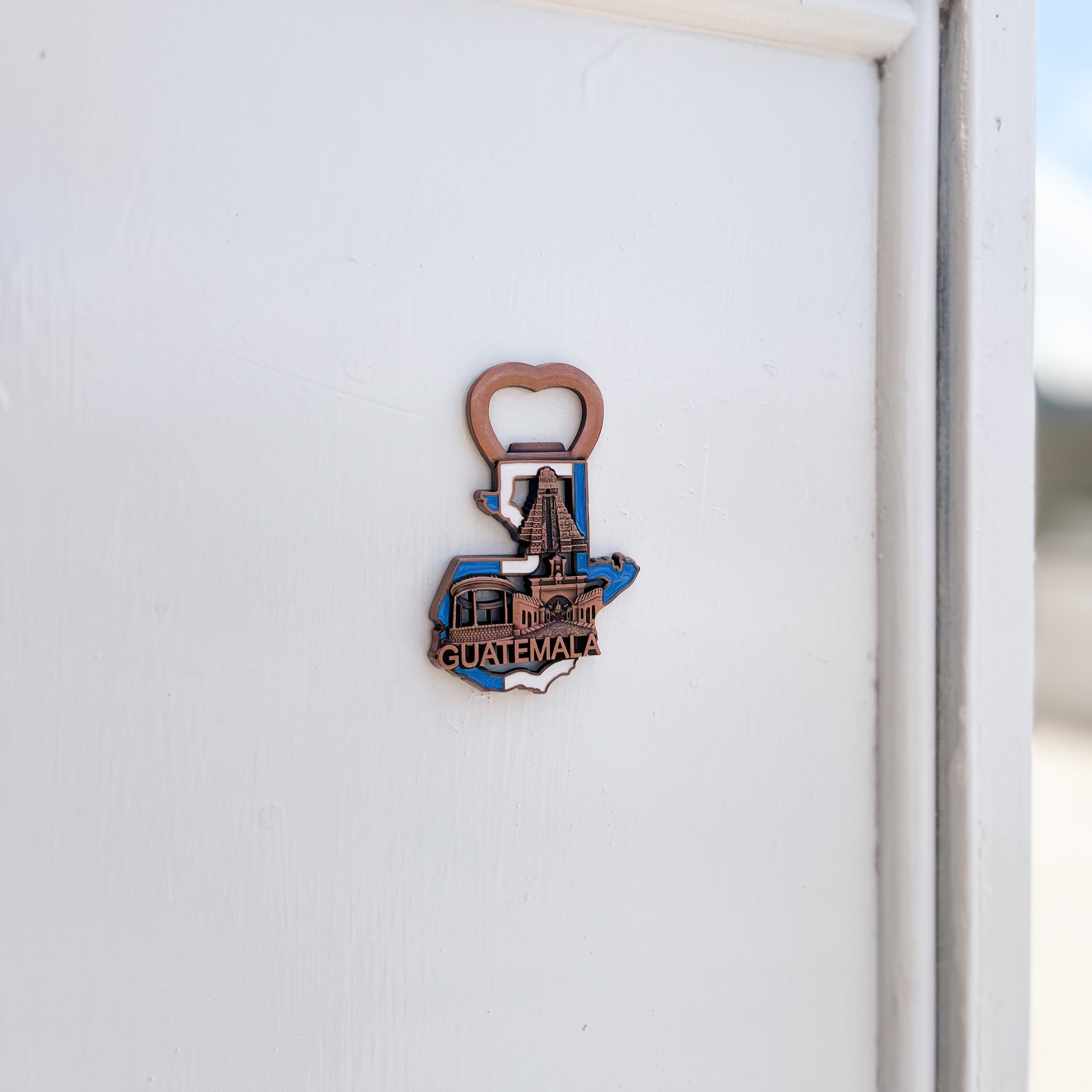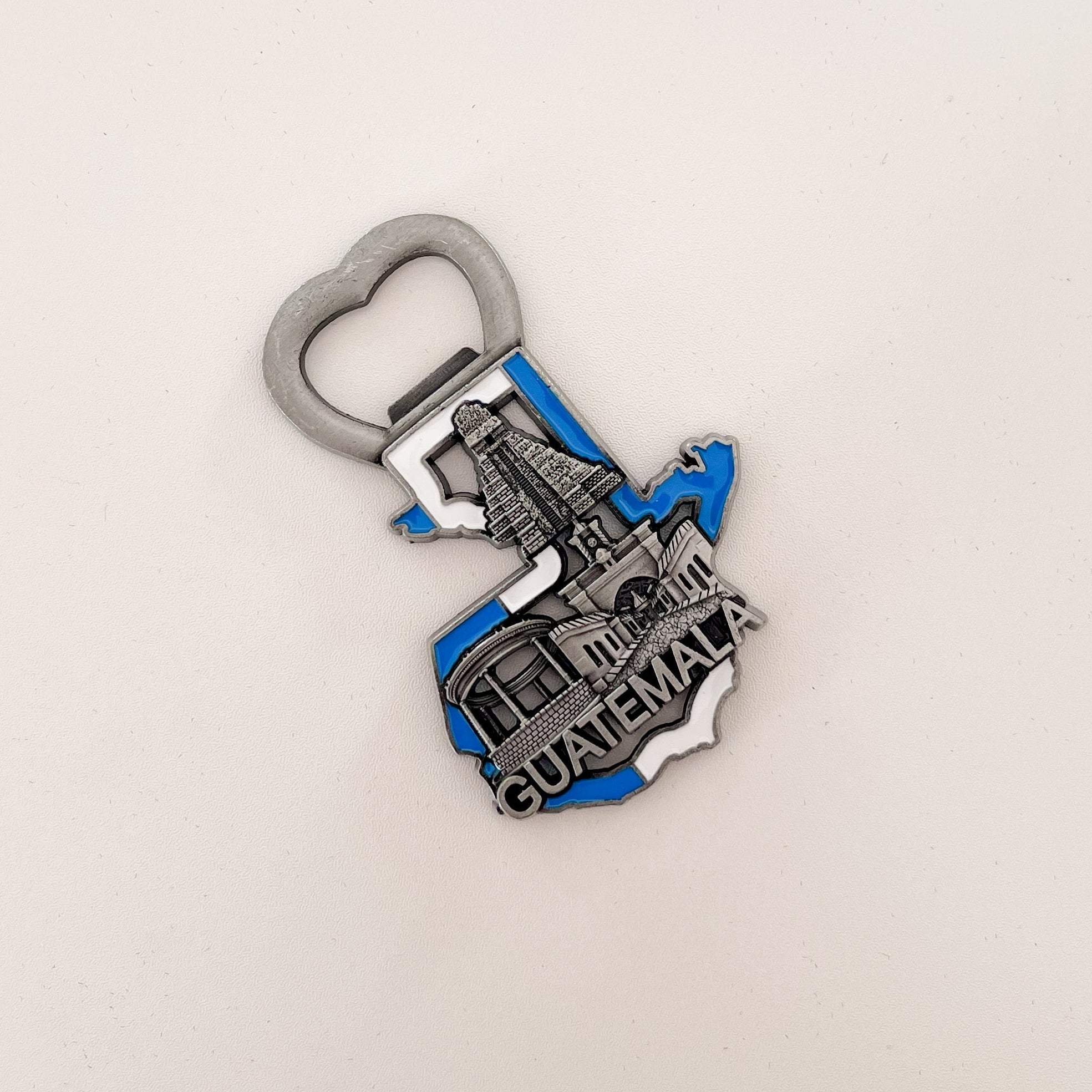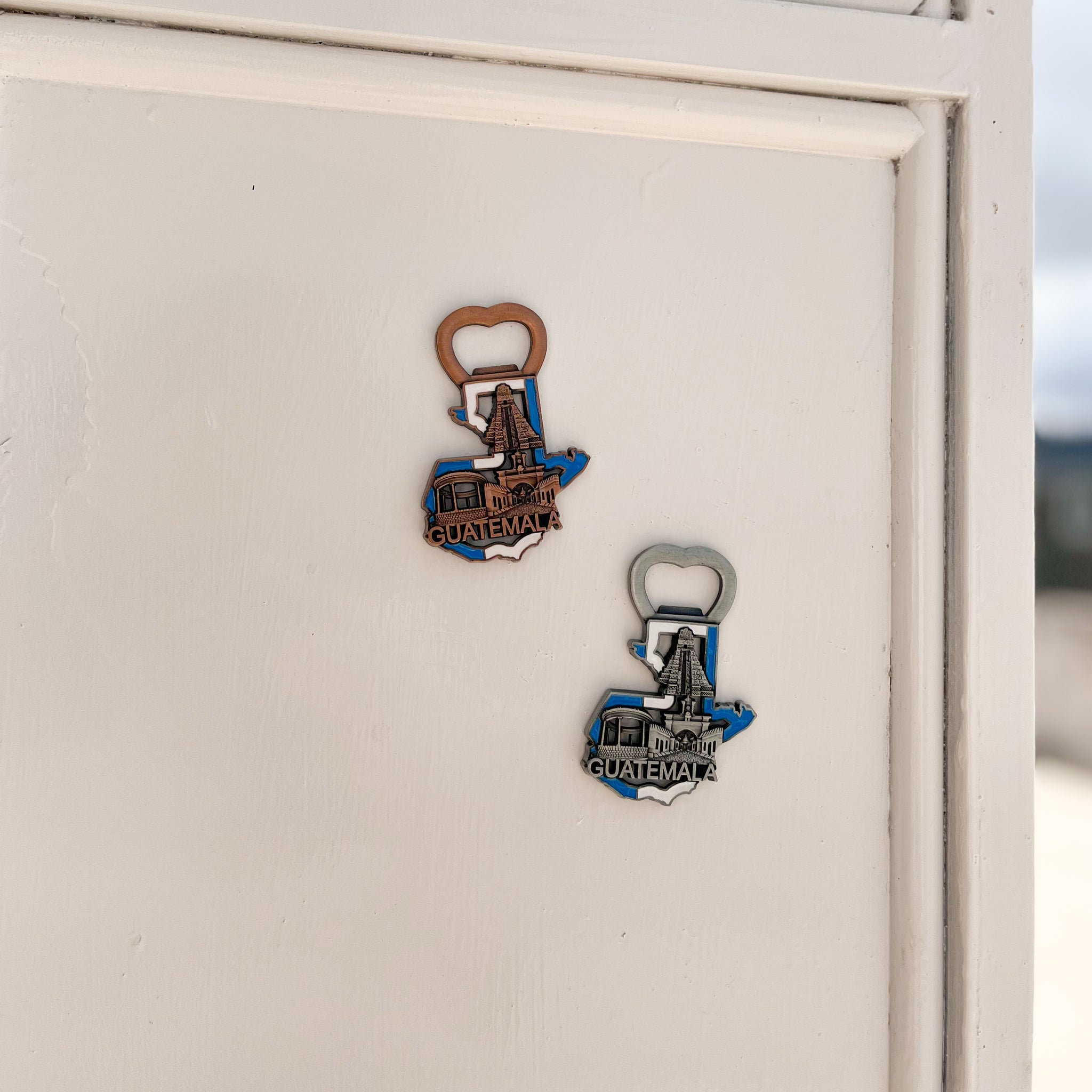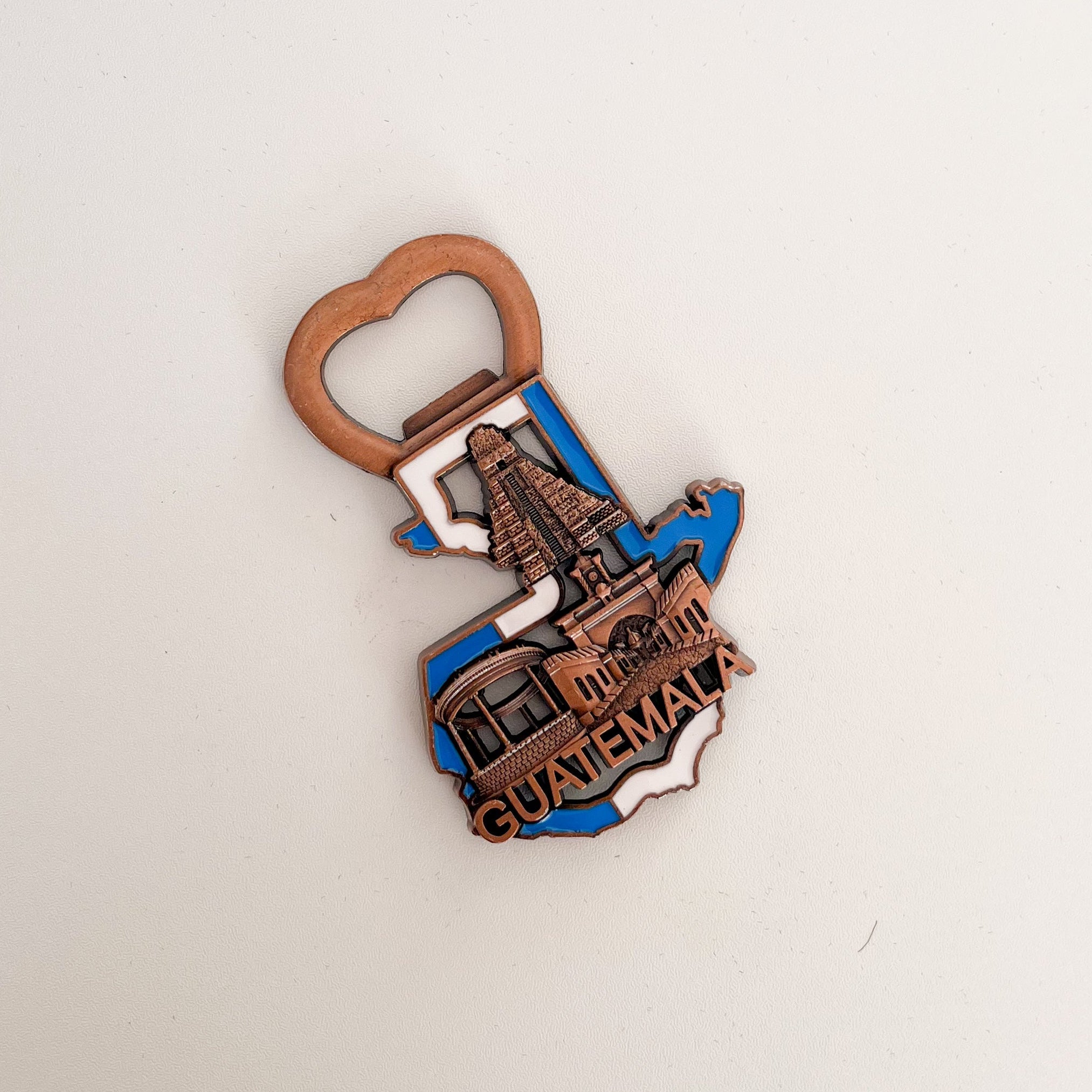 Celebra la esencia de Guatemala con este destapador de botellas magnético diseñado con la silueta del mapa del país y detalles icónicos. Su diseño en relieve y colores metálicos lo convierten en una pieza decorativa perfecta para tu refri, colección de viajes o como regalo especial para amantes de los productos únicos con identidad cultural.