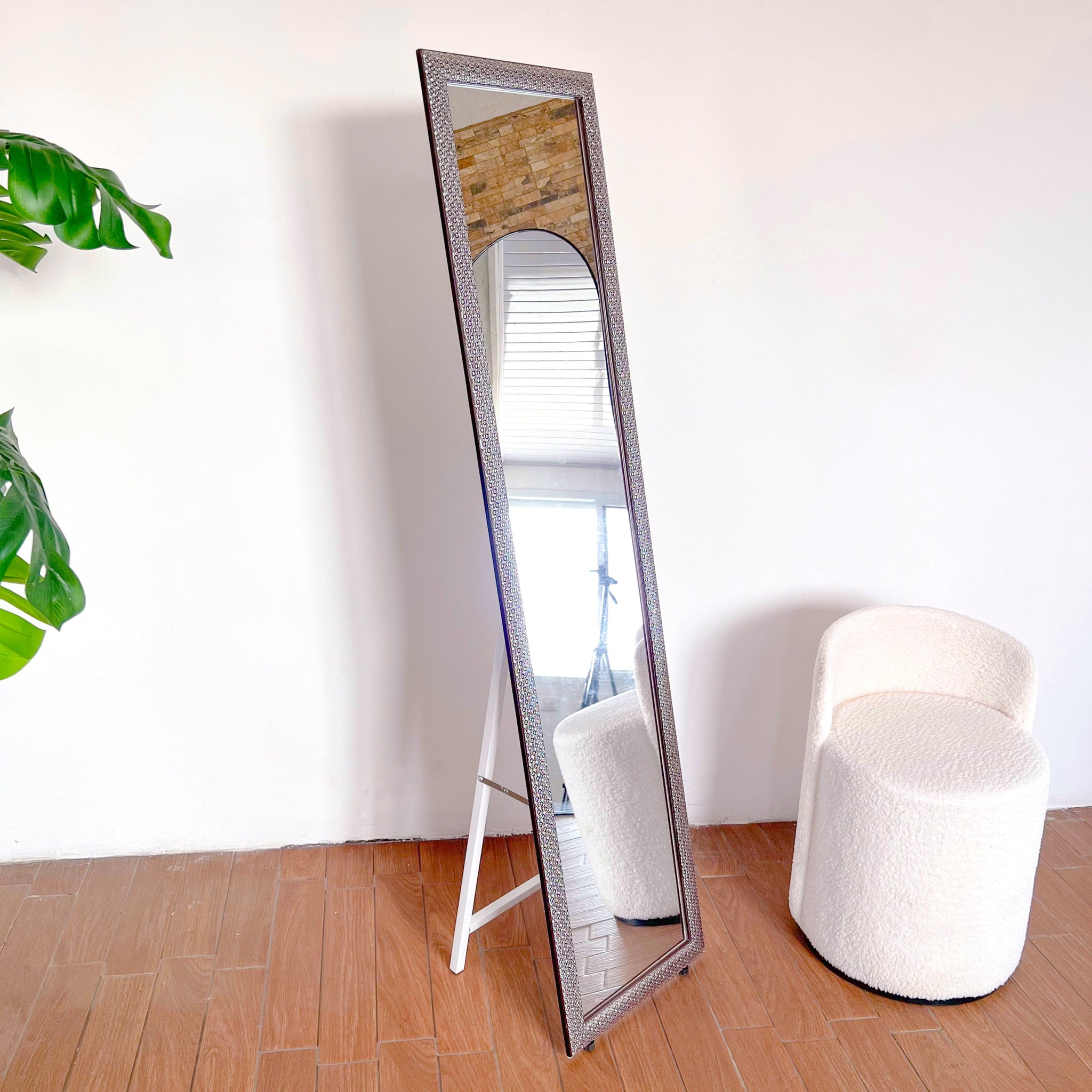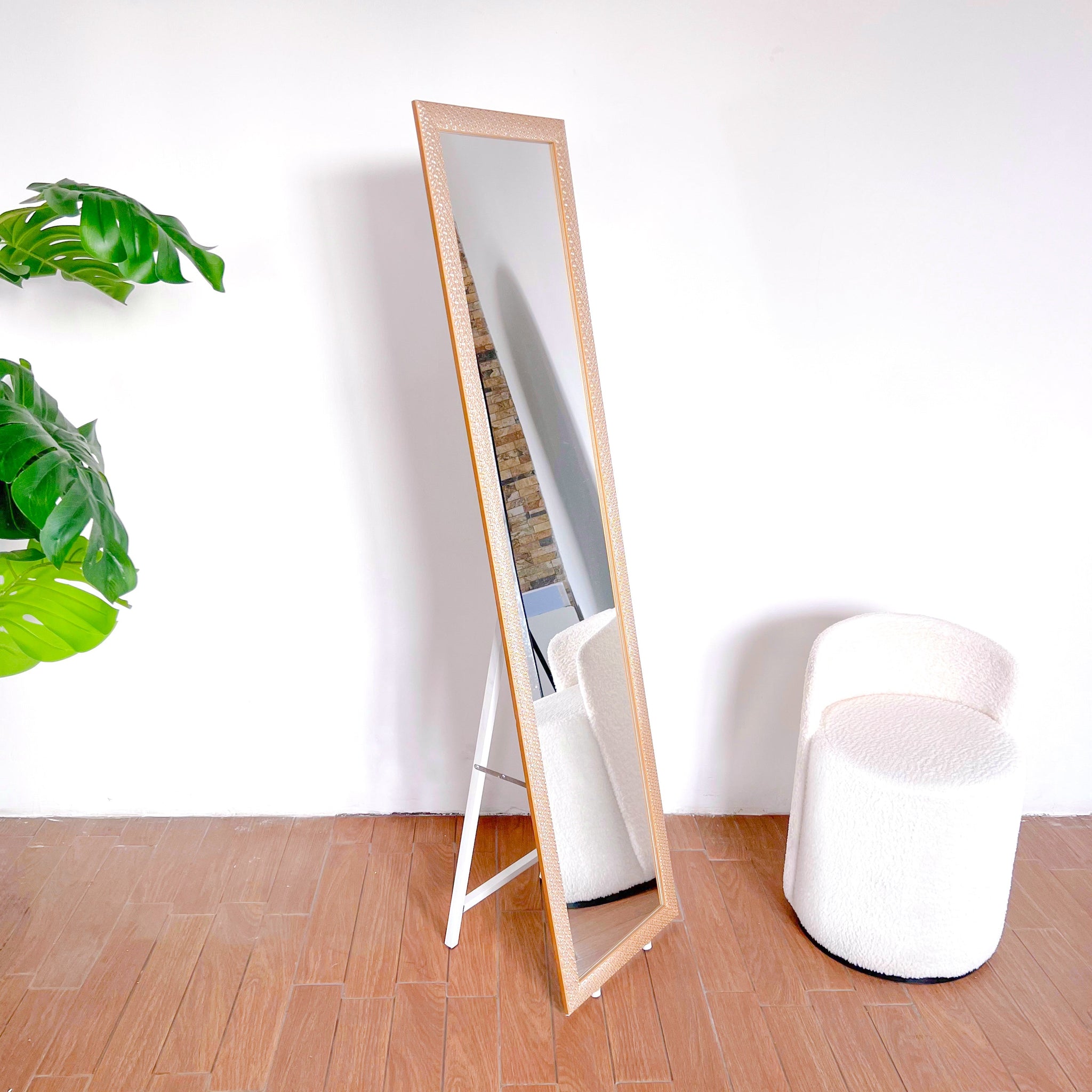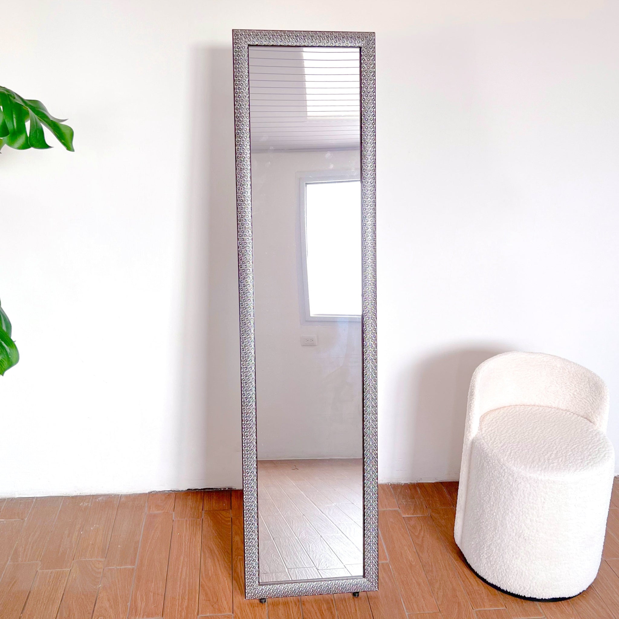 Este espejo de piso cuerpo completo combina funcionalidad y diseño en una pieza elegante que transforma cualquier espacio. Su formato rectangular vertical permite verte de pies a cabeza, ideal para armar outfits, crear contenido o aportar mayor amplitud visual a la habitación, vestidor o boutique.