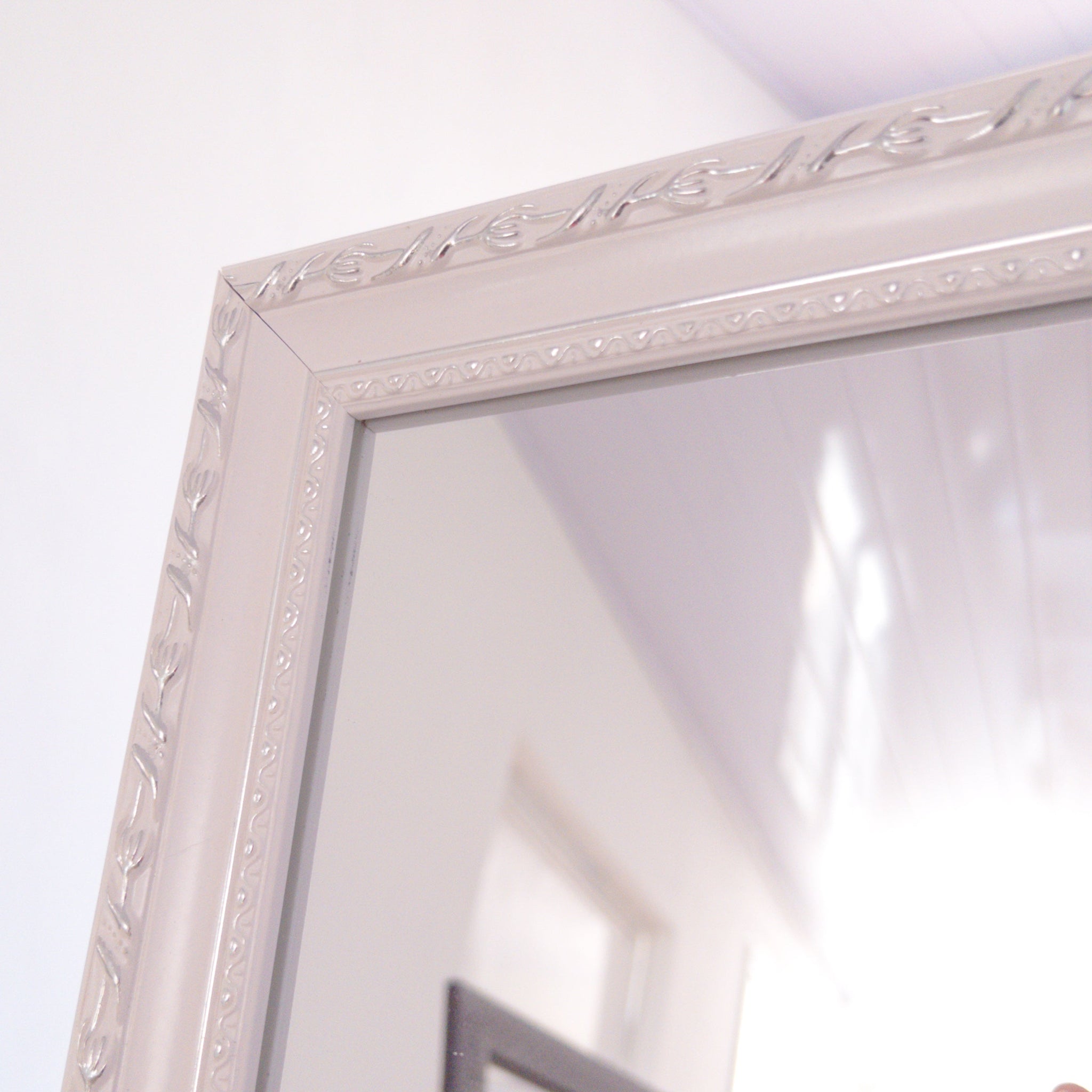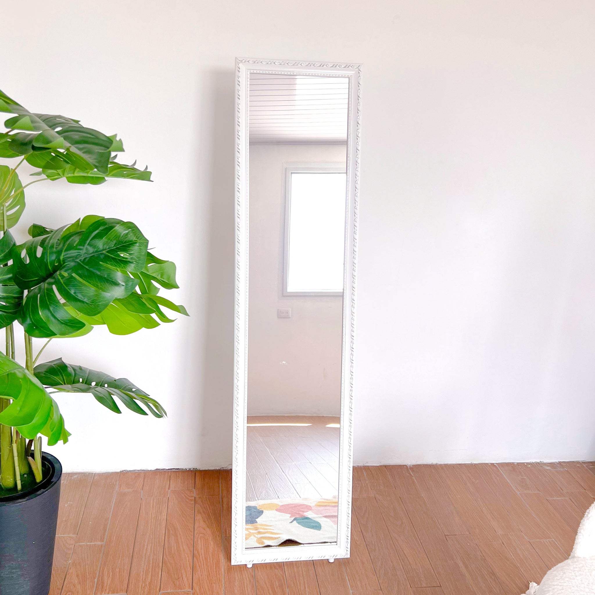 Espejo de piso de cuerpo completo blanco con marco texturizado