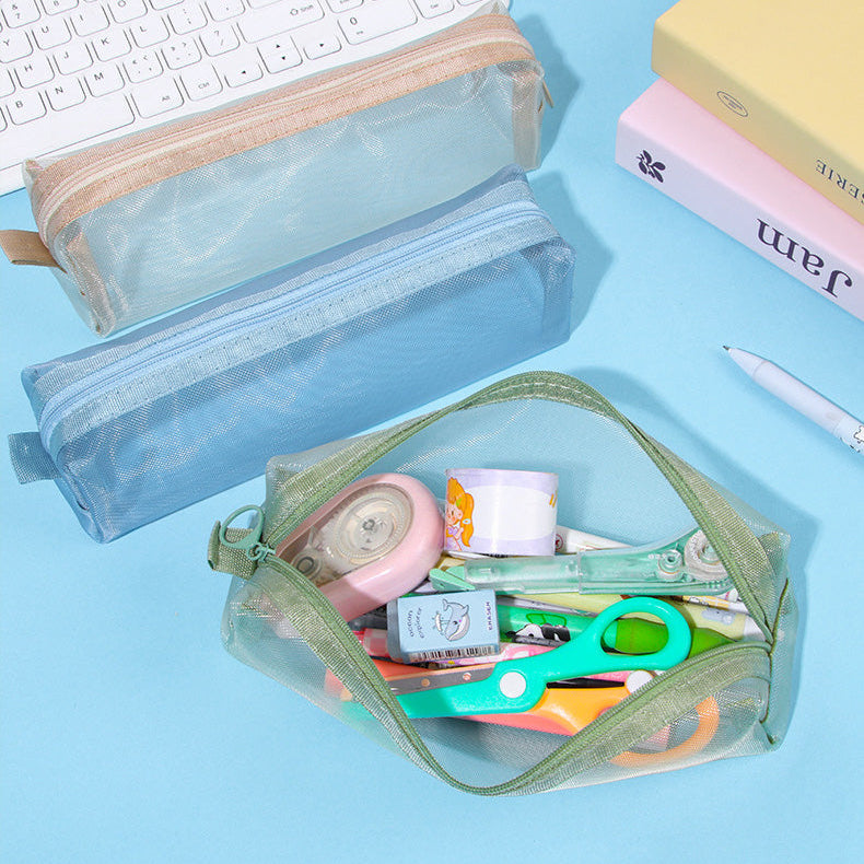 Este estuche transparente tipo mesh es perfecto para mantener tus útiles, cosméticos y accesorios siempre visibles y ordenados. Su diseño de malla permite identificar todo de un vistazo, evitando que tengas que vaciarlo para encontrar lo que buscas.