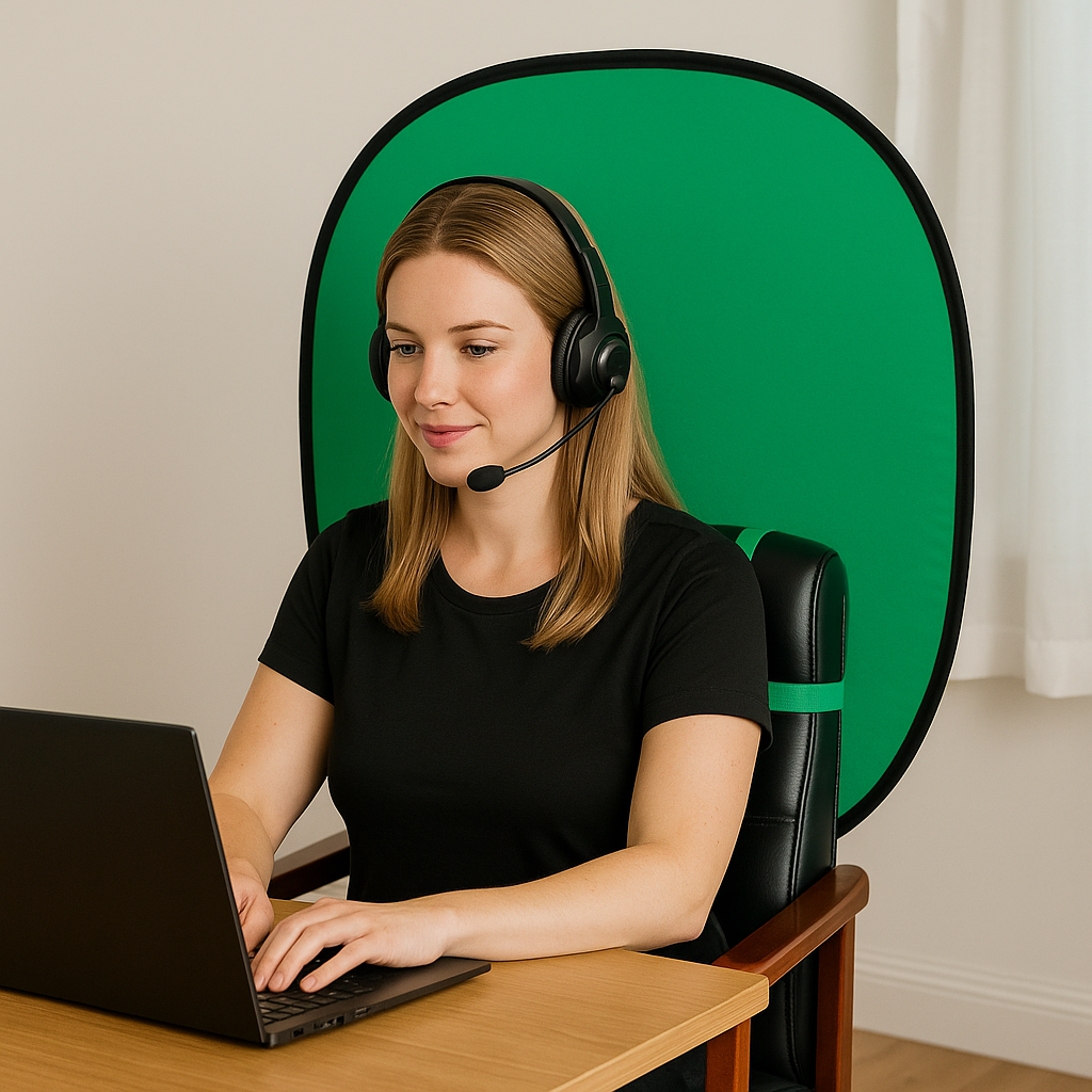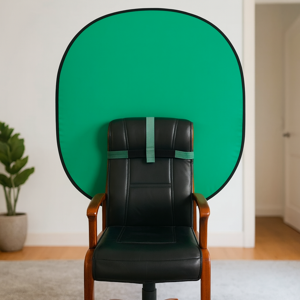 Convierte cualquier espacio en tu estudio profesional con este fondo verde plegable. Su diseño portátil y ligero lo hace ideal para videollamadas, transmisiones en vivo, grabaciones o fotografía con efecto chroma key. Se coloca fácilmente en el respaldo de la silla gracias a sus correas ajustables de velcro y se pliega en segundos para guardarse en su práctica bolsa de transporte.