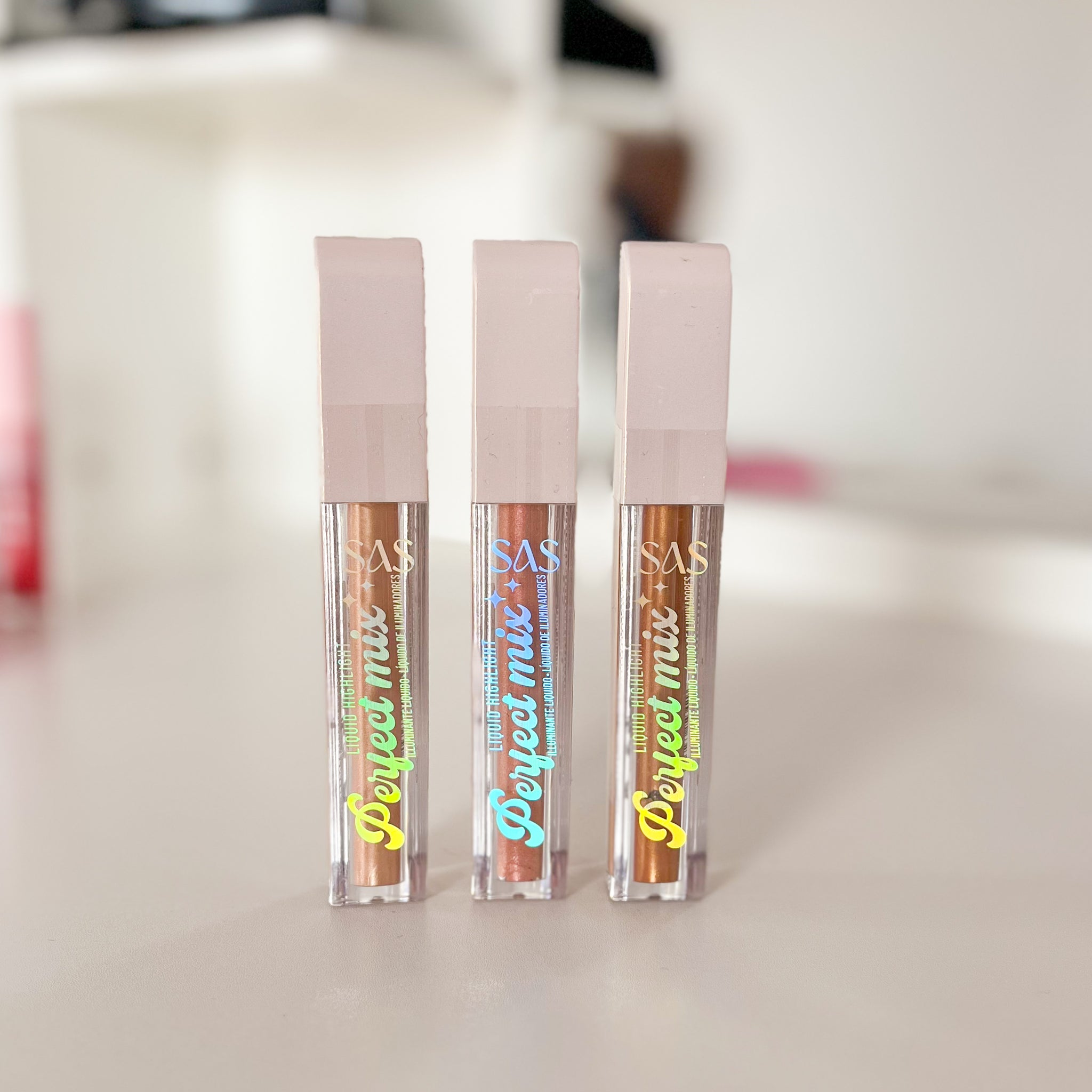 Este iluminador líquido SAS Perfect Mix aporta un brillo radiante y metálico que realza instantáneamente cualquier look. Su fórmula fluida y suave se difumina con facilidad sobre la piel, dejando un acabado luminoso que refleja la luz de forma natural. Es ideal para aplicar en pómulos, nariz, arco de cupido y clavículas, logrando un glow saludable y sofisticado sin textura pesada.