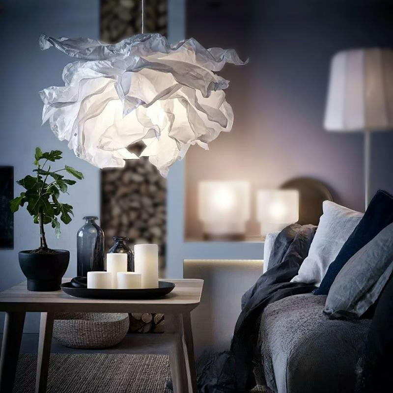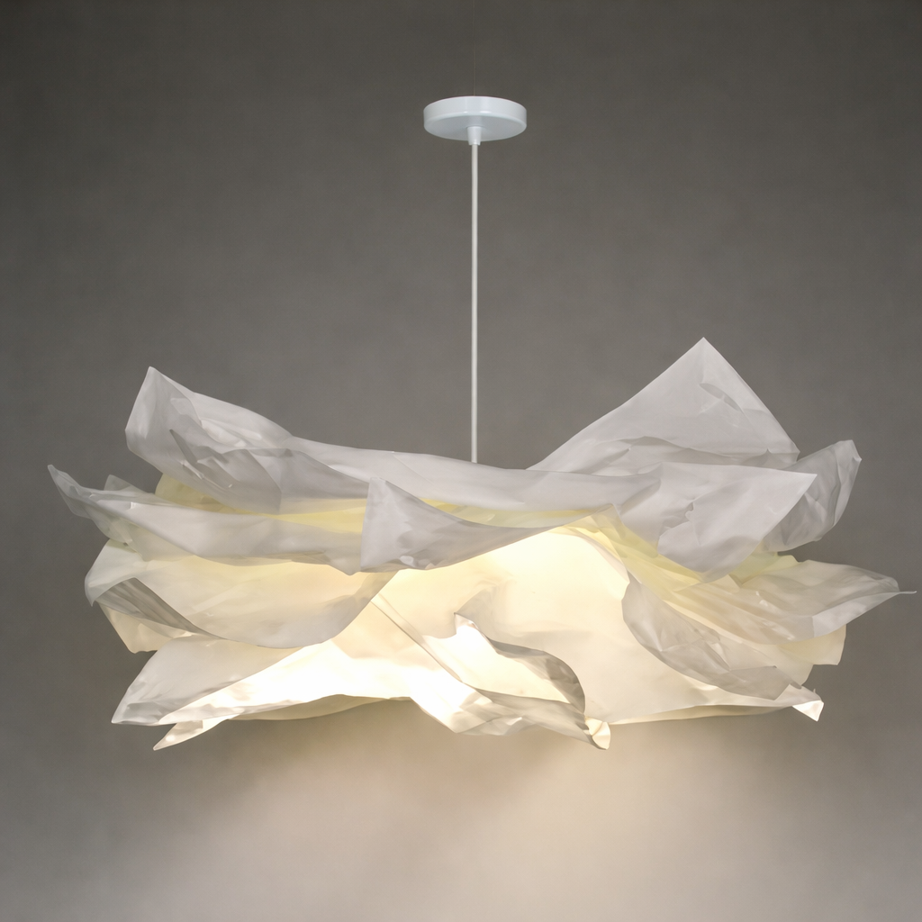 Transforma cualquier espacio con esta lámpara colgante de diseño orgánico inspirada en la forma etérea de una nube. Su estructura ondulada y ligera crea un efecto visual suave y elegante, aportando movimiento y personalidad a salas, comedores o dormitorios. La luz se filtra delicadamente a través de sus capas translúcidas, generando una iluminación cálida y acogedora.