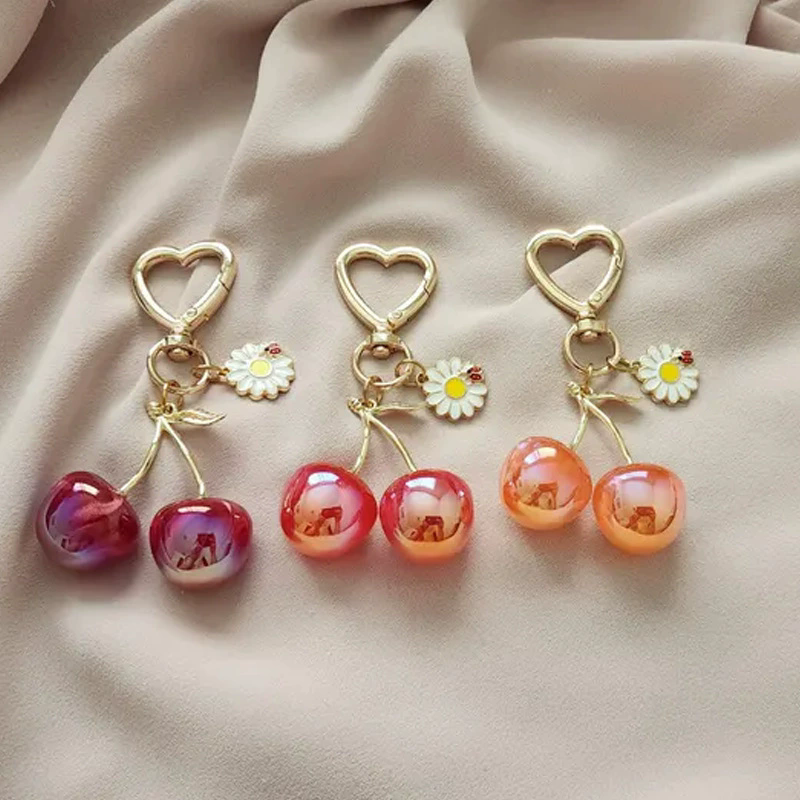 Agrega un toque frutal y brillante a tu día con este llavero cherry. Su acabado glossy  lo hacen el accesorio perfecto para bolsos, mochilas o llaves.