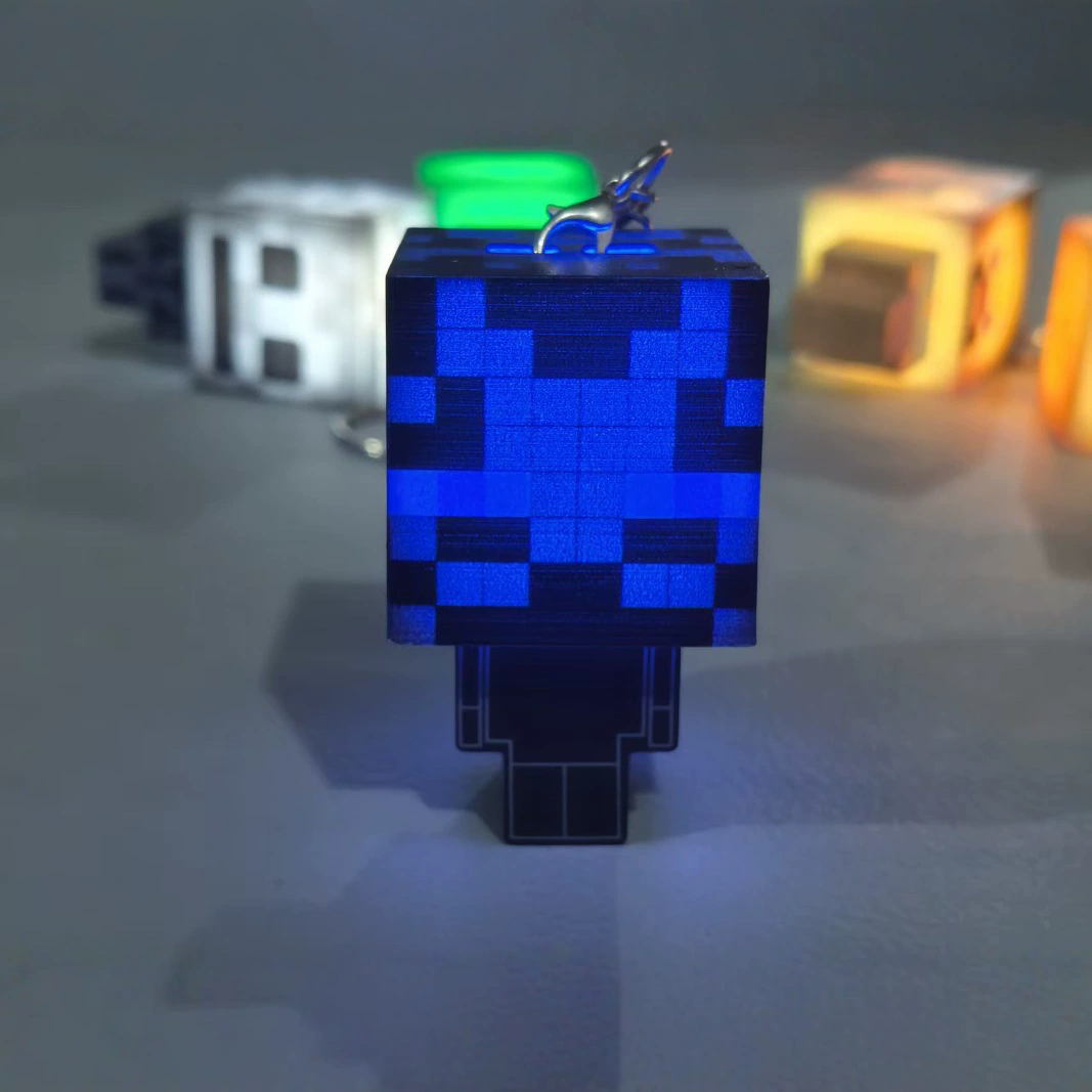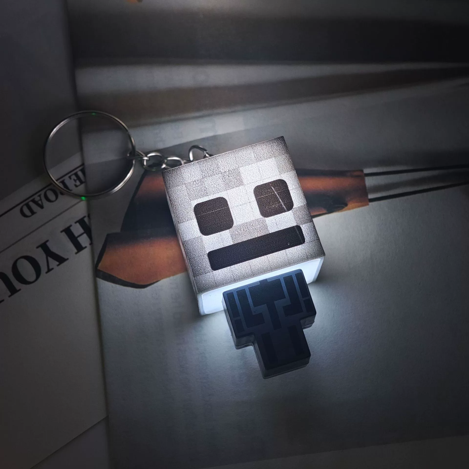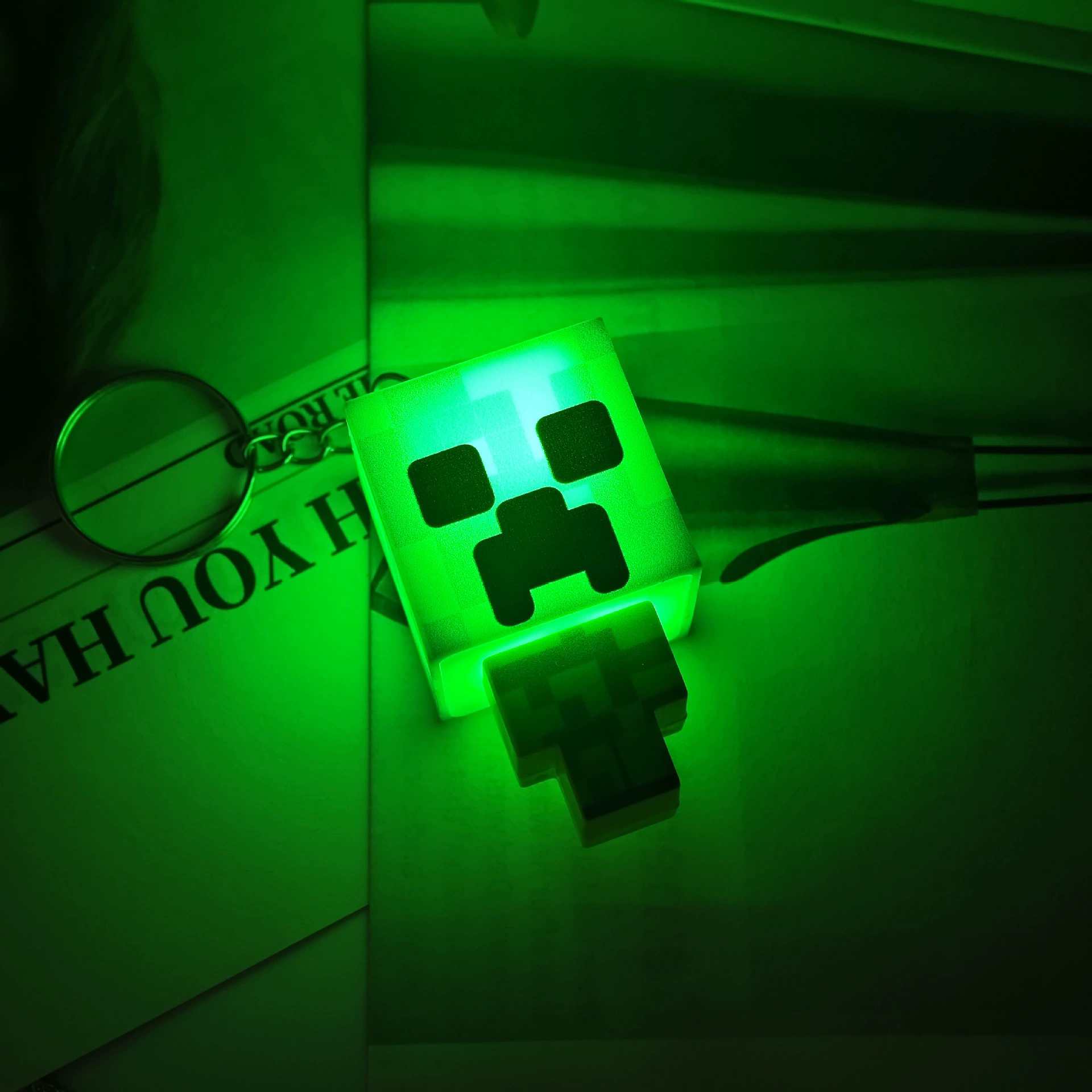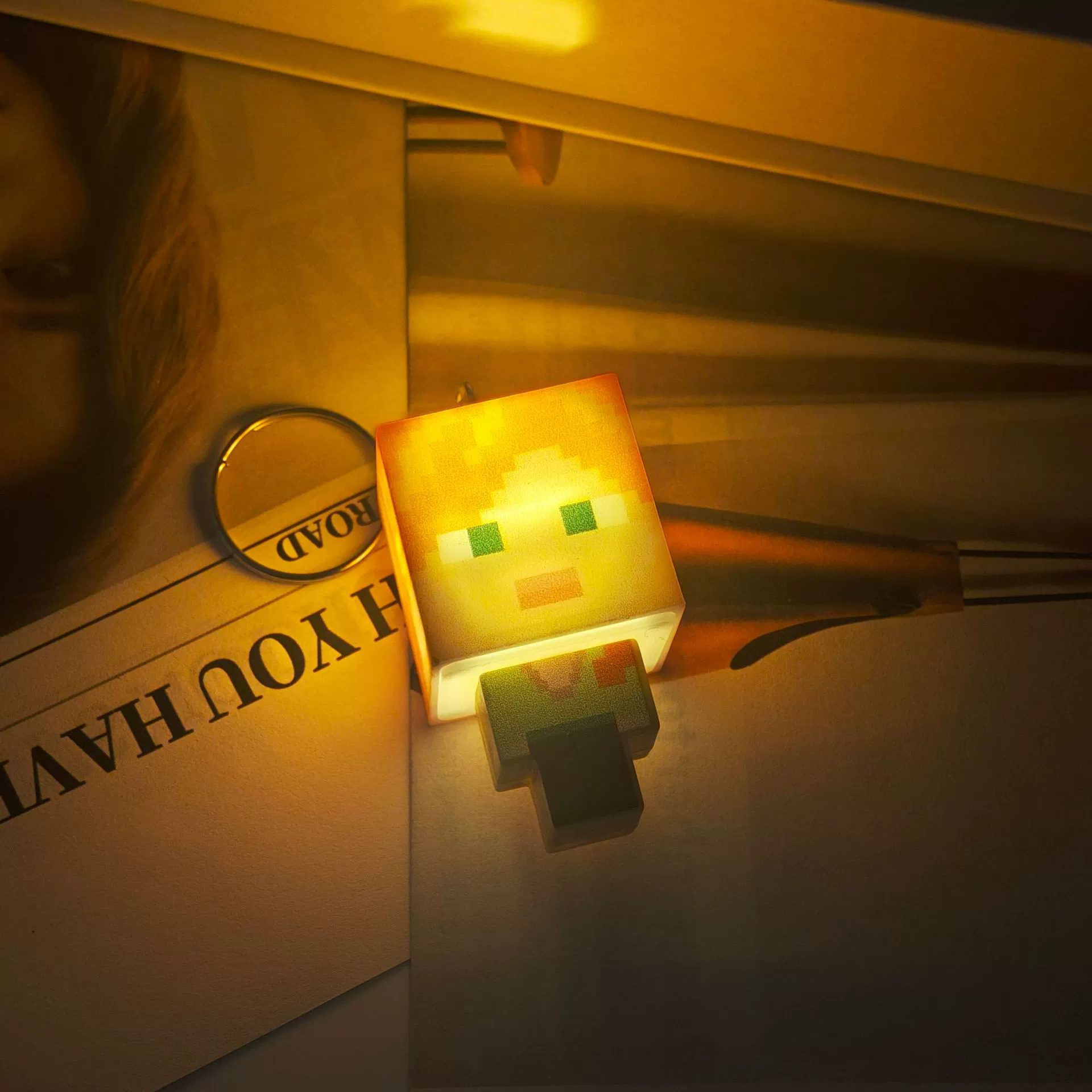 El llavero con luz LED de Minecraft es un accesorio portátil inspirado en personajes de estilo videojuego retro. Su diseño cúbico con estética pixelada se ilumina al activarse, proyectando una luz brillante en diferentes colores según el modelo. Es ideal como accesorio decorativo para mochilas, bolsos o llaves.
