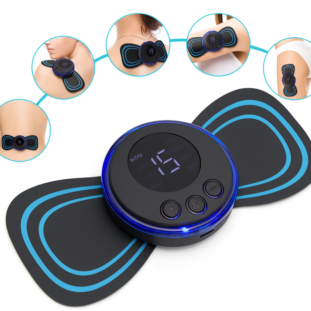 Despídete de las molestias musculares con este masajeador compacto tipo mariposa. Gracias a su tecnología TENS/EMS de impulsos eléctricos, alivia la tensión en espalda, cuello, piernas, abdomen o brazos.