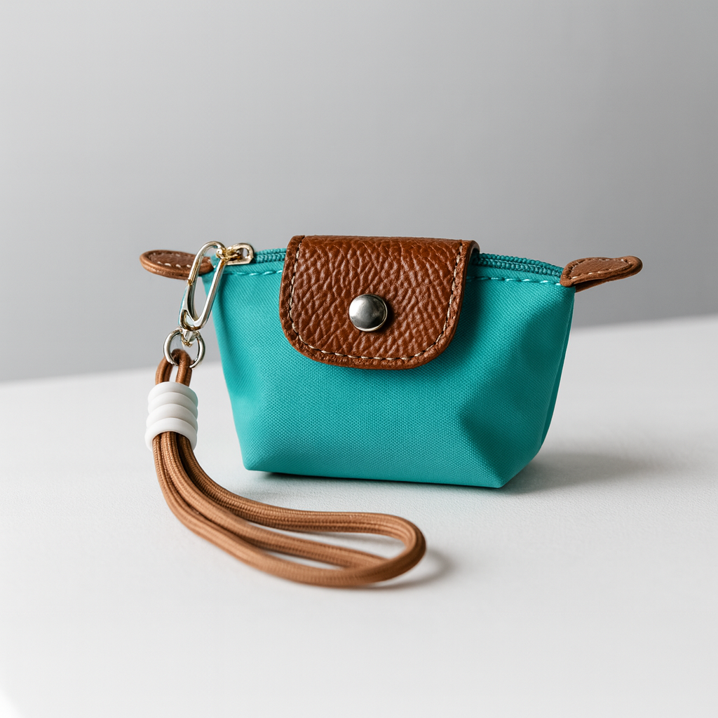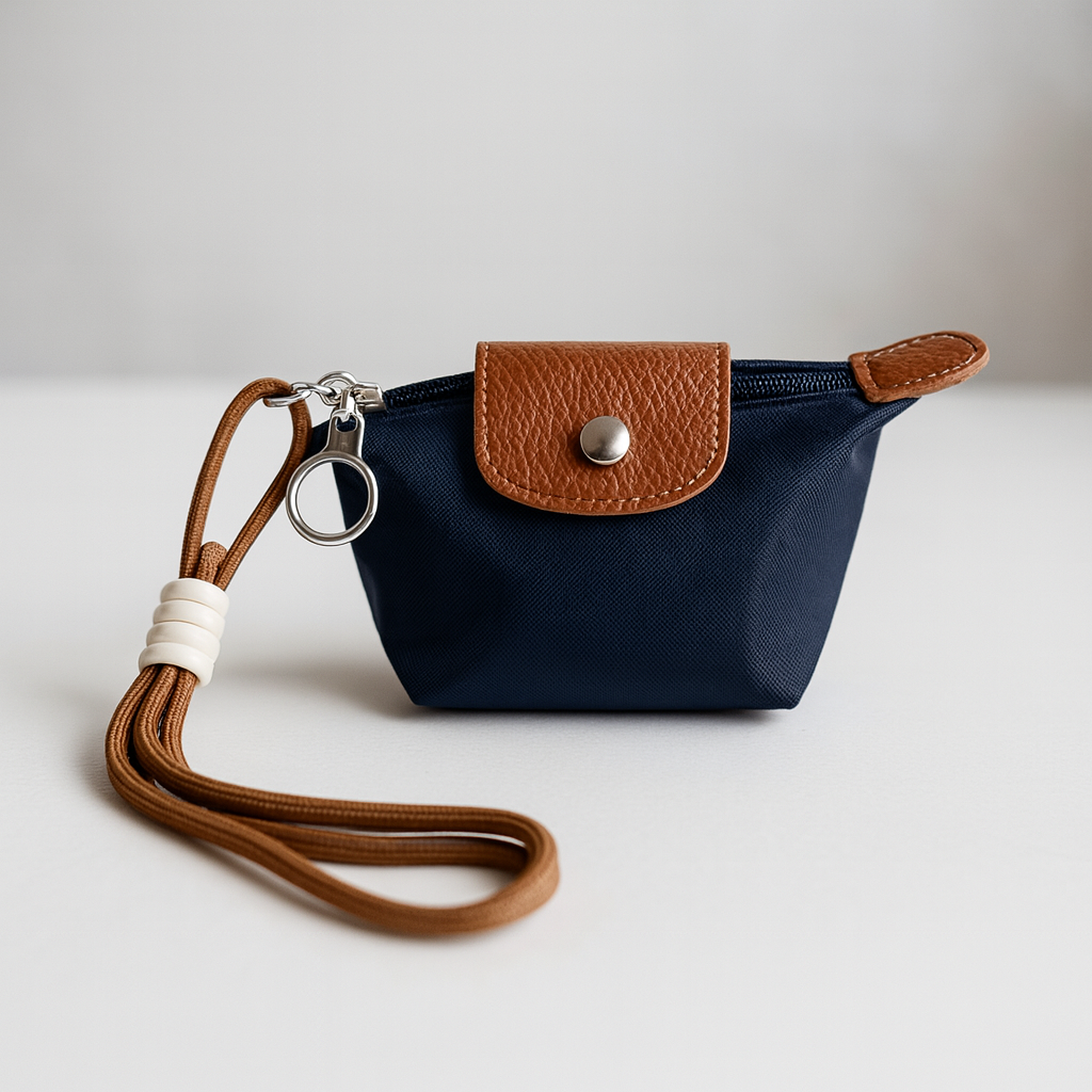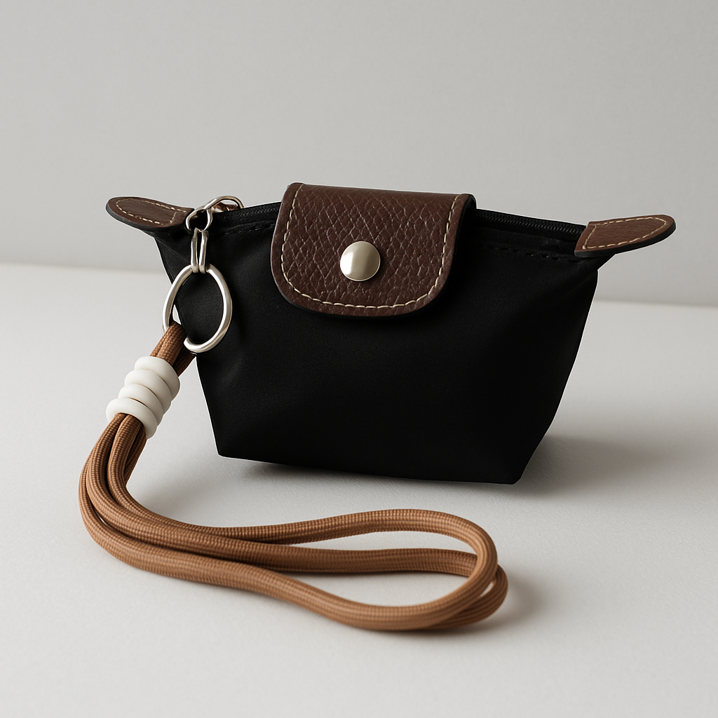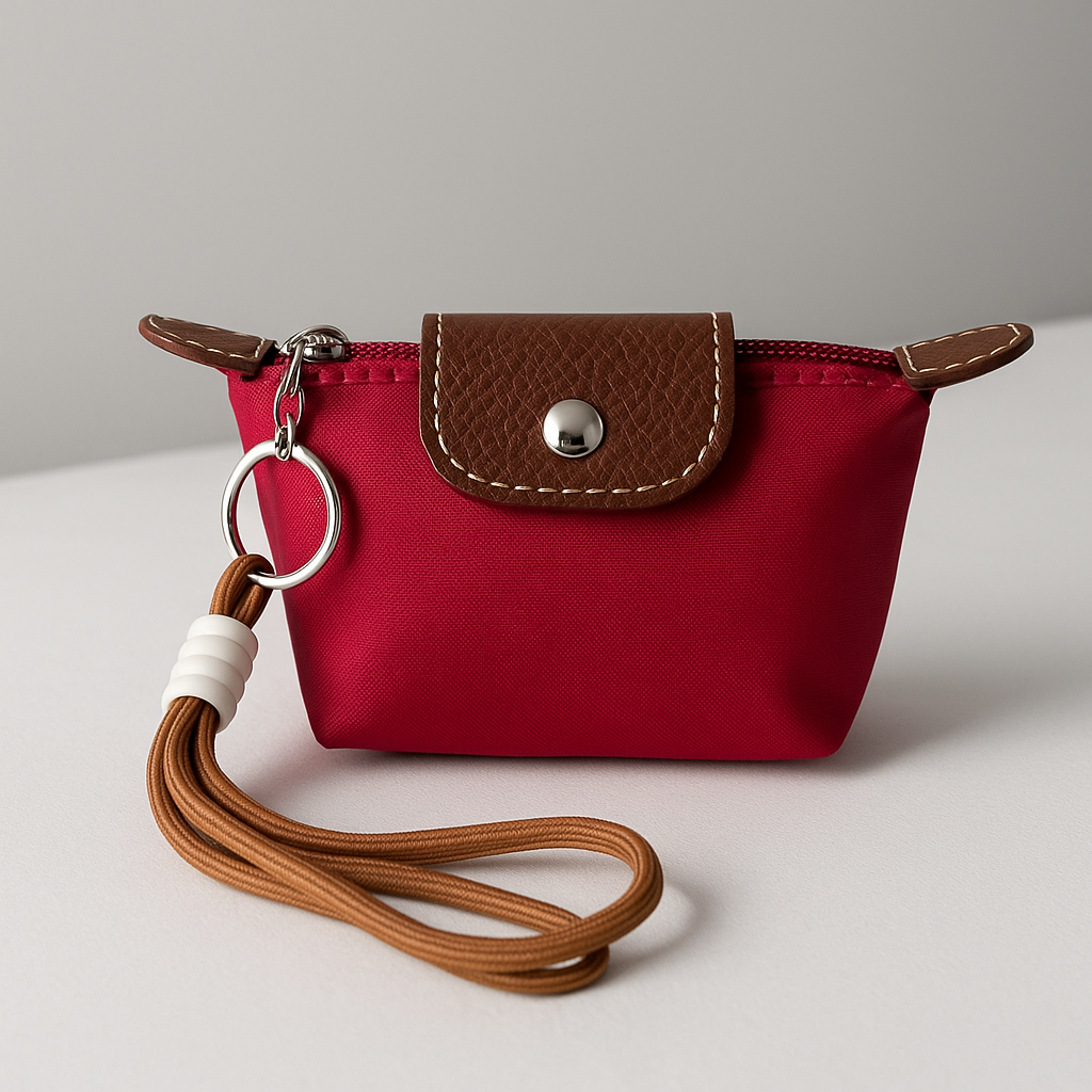 Este mini monedero con muñequera es perfecto para llevar lo esencial con comodidad y estilo. Su diseño compacto incluye un llavero metálico y una correa elástica tipo muñequera que permite mantenerlo siempre a la mano, ideal para salir ligera, hacer mandados, llevar dinero, llaves o pequeños objetos personales. El contraste del material tipo cuero en el broche y el borde aporta un toque elegante y moderno.