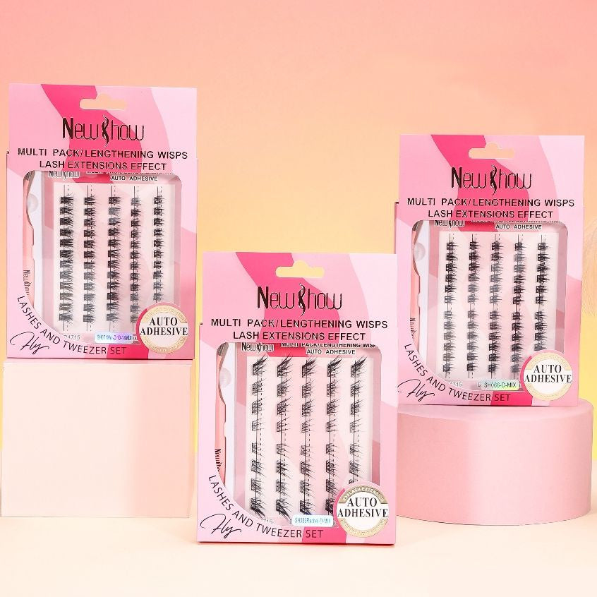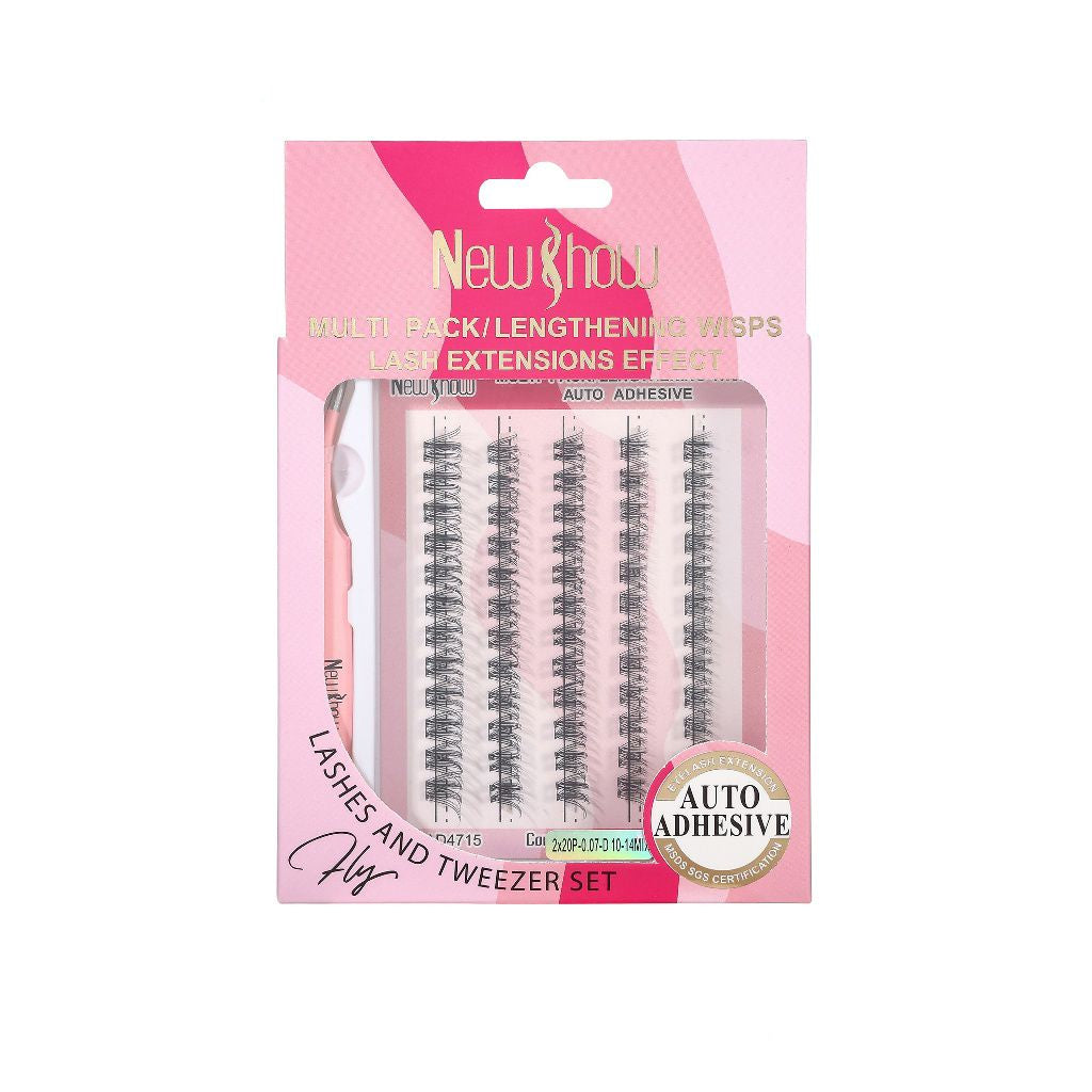 El set de pestañas autoadhesivas New Show te da un efecto de extensión de pestañas profesional sin necesidad de pegamento.