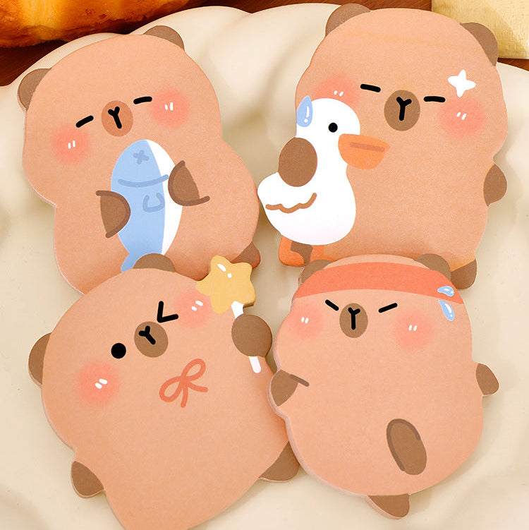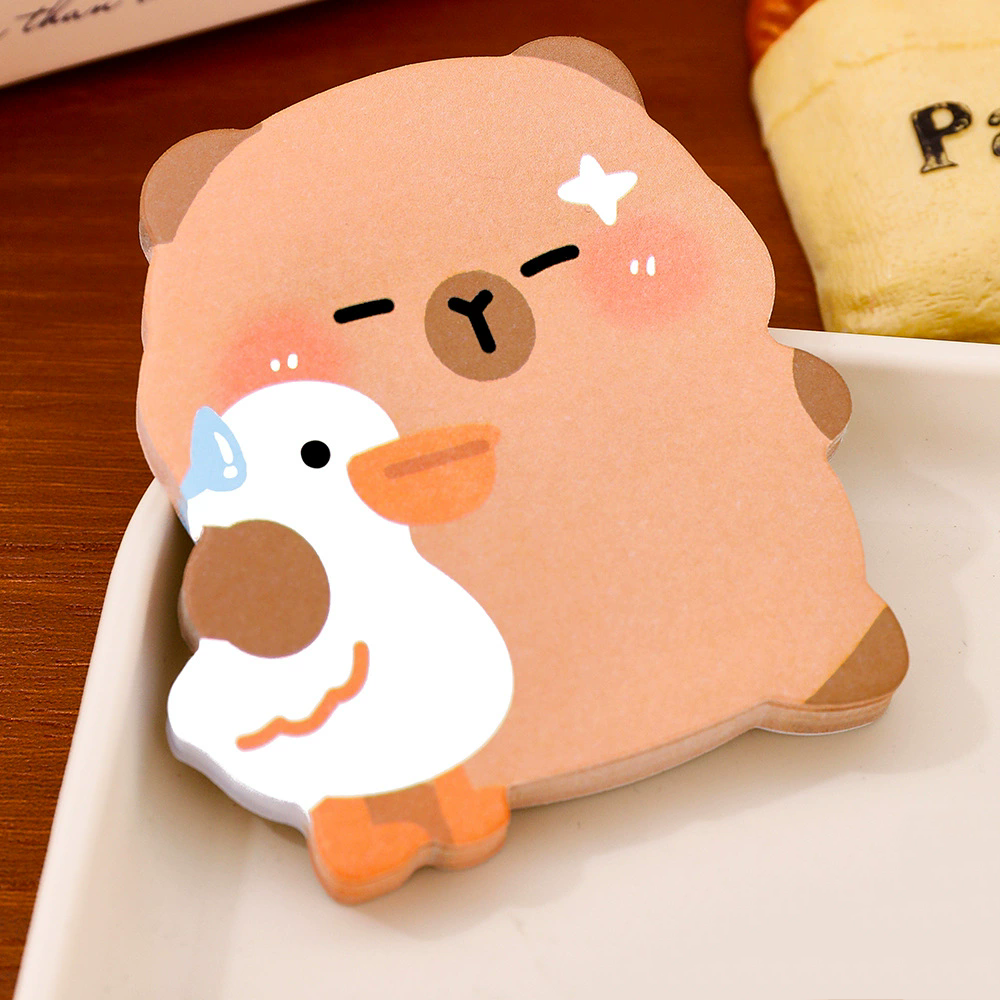 Estas notas adhesivas con diseño de capibara son el toque perfecto para darle alegría y personalidad a tu escritorio, agenda o espacio de estudio. Cada bloc presenta ilustraciones adorables con diferentes expresiones y accesorios, ideales para hacer tus recordatorios más divertidos y visuales.