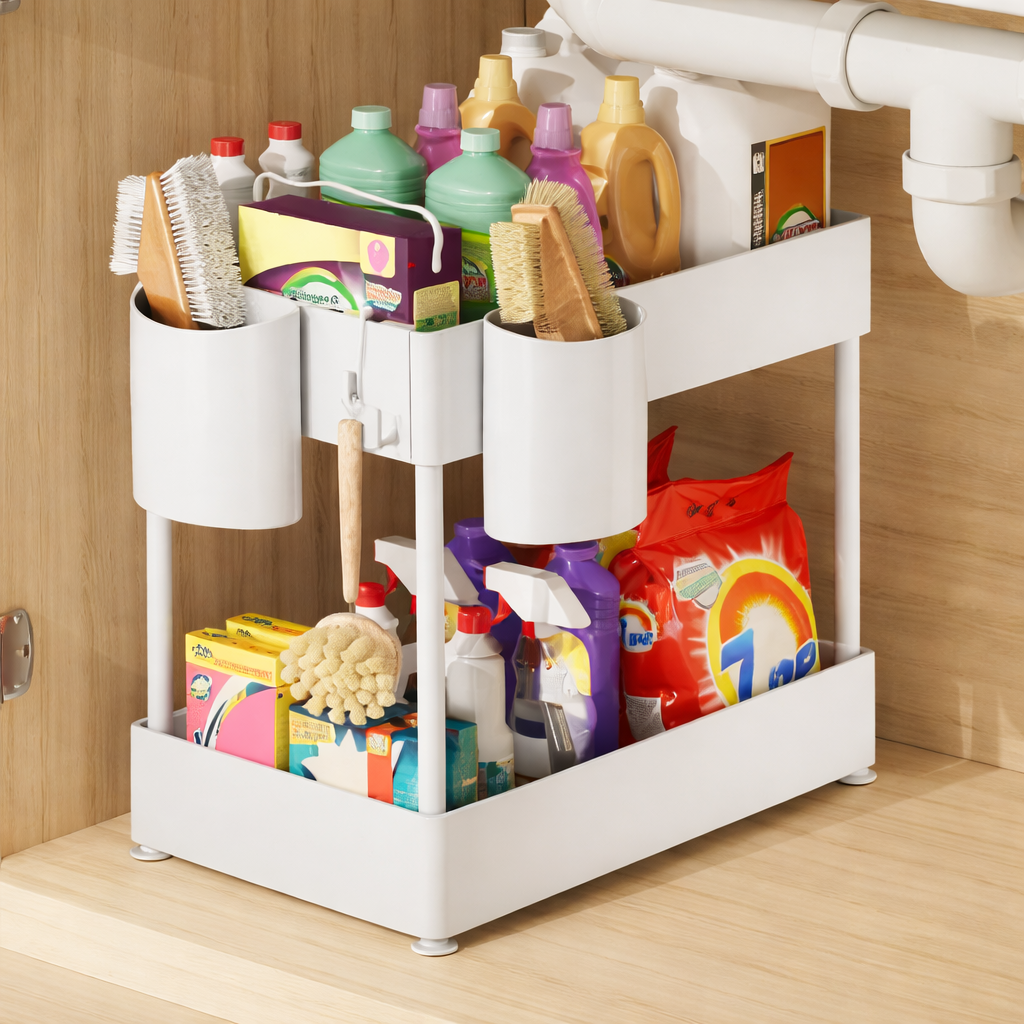 El organizador multifuncional de 2 niveles es una solución práctica y estética para mantener tu espacio de trabajo ordenado. Su diseño en estructura ligera se adapta perfectamente a escritorios, tocadores o estaciones de estudio, aportando una apariencia limpia y minimalista.