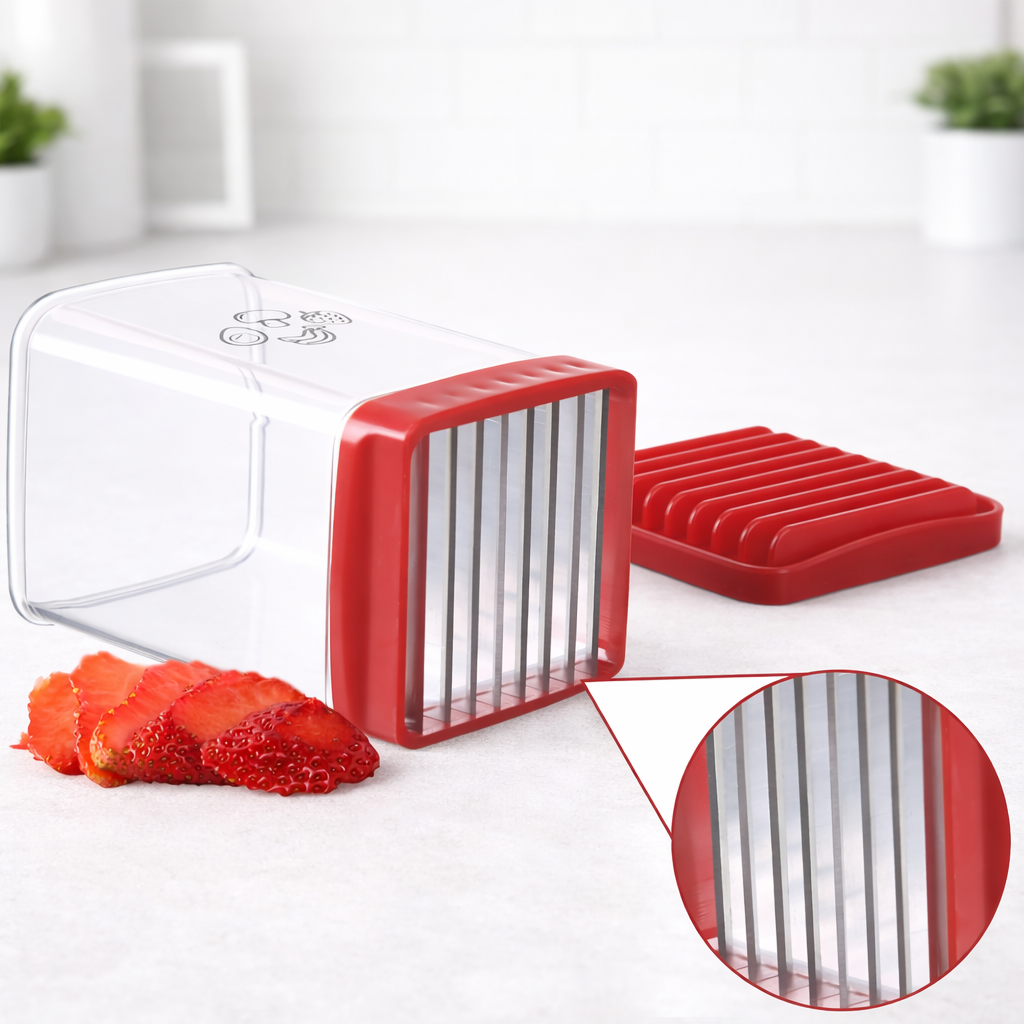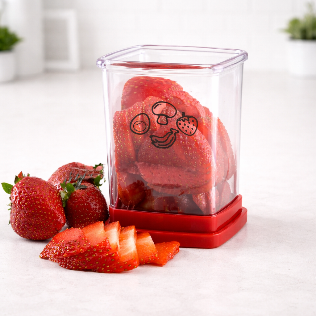 Este cortador de frutas es la solución perfecta para obtener rebanadas uniformes en segundos, sin esfuerzo y sin desorden. Su diseño tipo push permite cortar frutas suaves como banano, fresas y otros alimentos de manera rápida y segura, simplemente presionando hacia abajo. Ideal para desayunos, snacks, loncheras o para preparar bowls y postres de forma práctica.