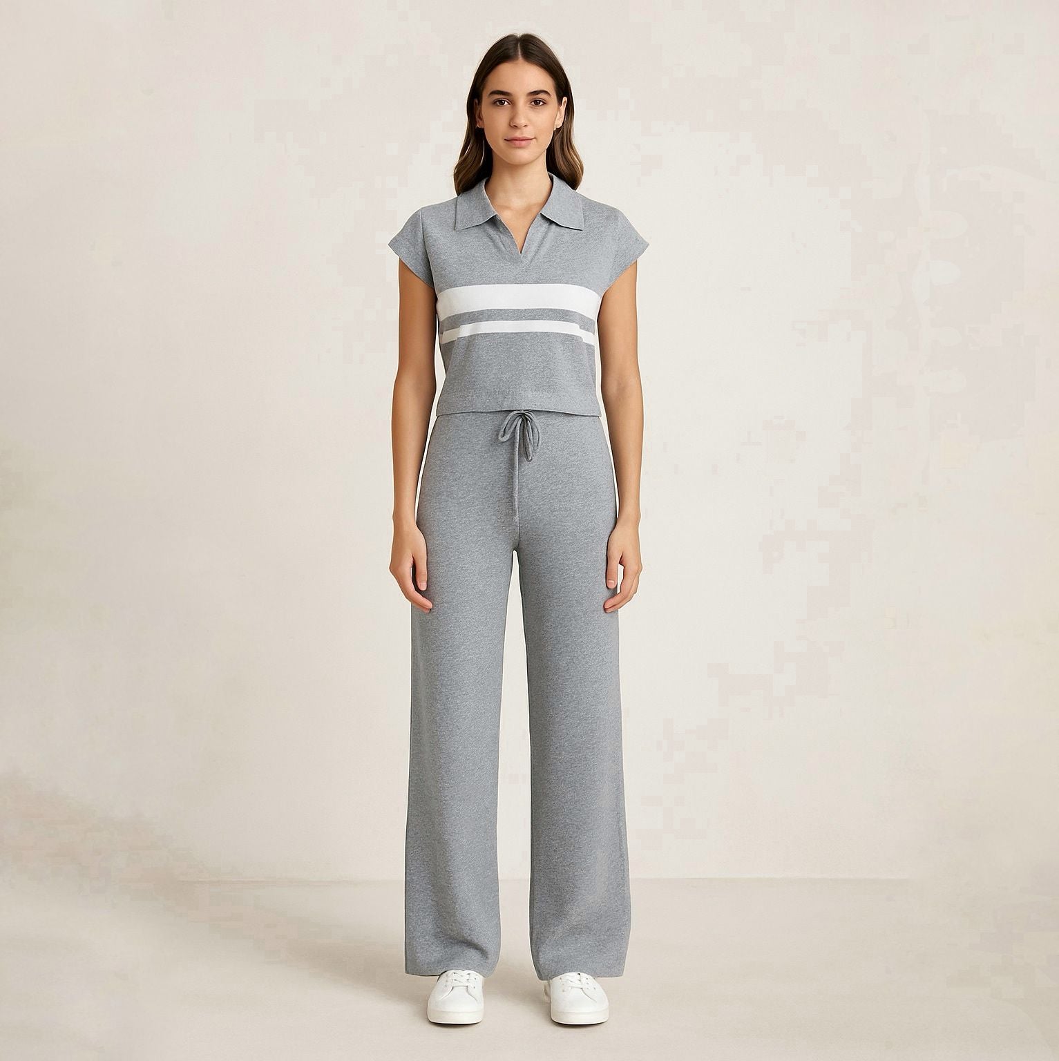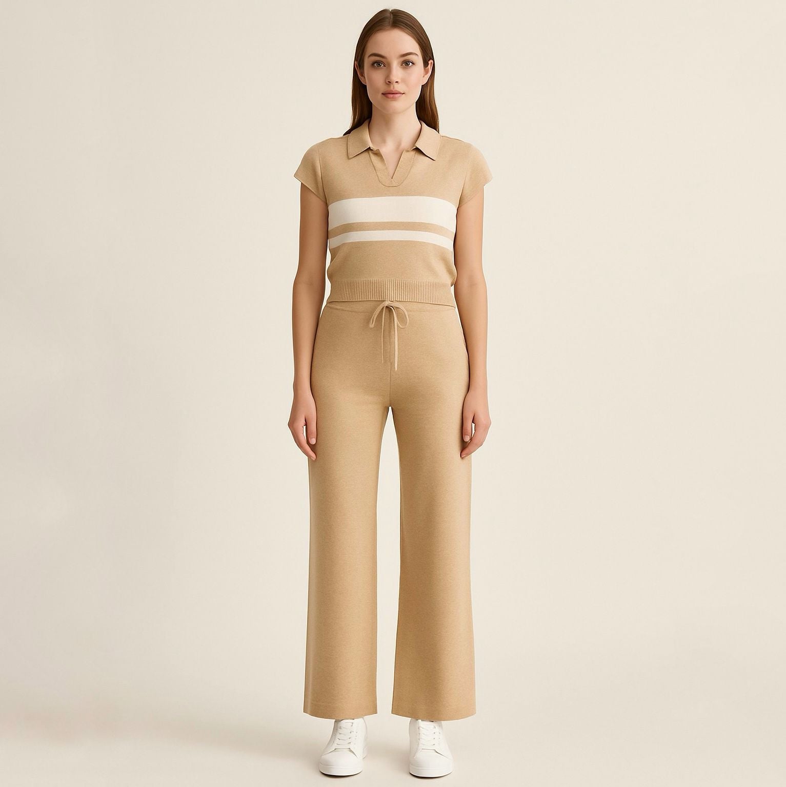 Conjunto de dos piezas tejido con estilo moderno y versátil. Ideal para crear looks casuales con un toque chic, manteniendo la comodidad durante todo el día. Su diseño atemporal lo convierte en una opción perfecta para cualquier temporada.