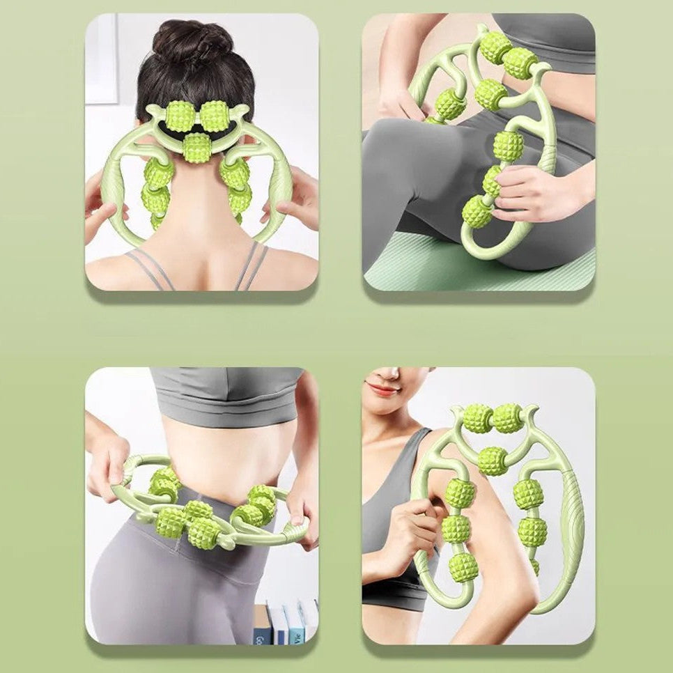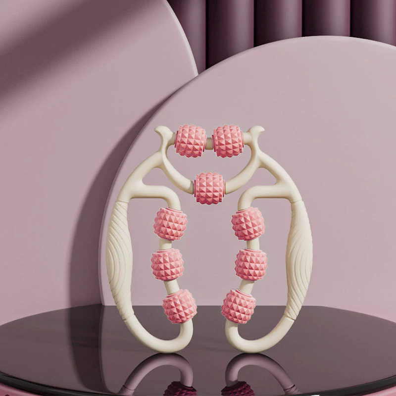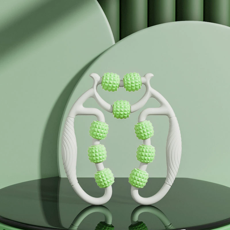 Este rodillo masajeador manual está diseñado para aliviar la tensión muscular, mejorar la circulación y ayudarte a tonificar zonas como piernas, brazos, pantorrillas y muslos. Sus rodillos 3D con textura geométrica proporcionan un masaje profundo que estimula el drenaje linfático, reduce la sensación de piernas cansadas y ayuda a suavizar la piel. Su diseño ergonómico permite un masaje firme sin esfuerzo, ideal para usar antes o después de entrenar o como parte de una rutina de autocuidado diario.