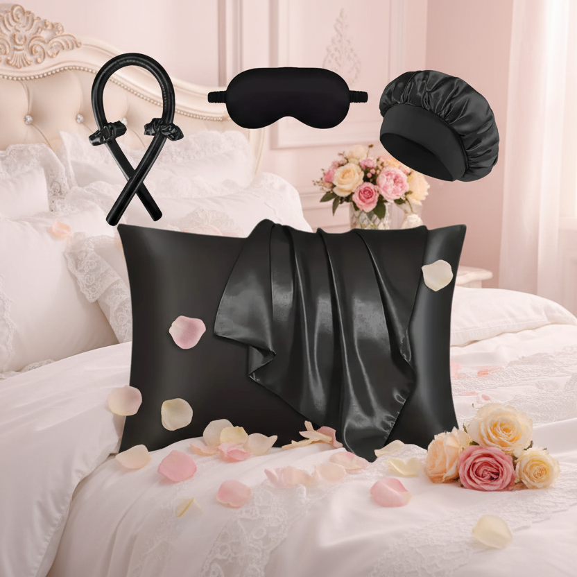 Este set de descanso de satén está diseñado para elevar tu rutina nocturna con una experiencia suave, elegante y confortable. Cada pieza ayuda a reducir el frizz, minimizar la fricción y cuidar tanto el cabello como la piel mientras duermes, gracias a su textura lisa y delicada al tacto.