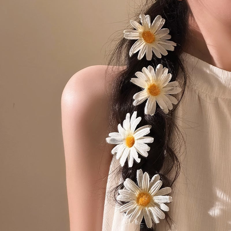 Este accesorio floral para el cabello está inspirado en la frescura y delicadeza de las margaritas, aportando un toque romántico y natural a cualquier look. Su diseño en forma de flor blanca con centro amarillo crea un efecto dulce y femenino, ideal para peinados sueltos, trenzas o recogidos relajados. Es perfecto para elevar outfits casuales, veraniegos.