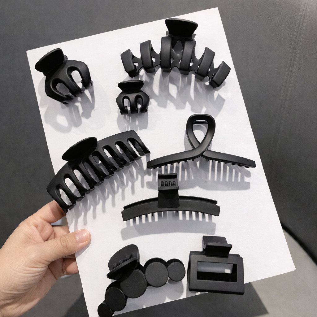 Eleva cualquier peinado en segundos con este set de 8 ganchos para cabello en acabado mate y diseño moderno. Incluye una variedad de formas ideales para recoger el cabello completo o crear estilos semi recogidos con un toque elegante y actual. Sus tonos neutros y combinables los convierten en el complemento perfecto para looks casuales, de oficina o más sofisticados.