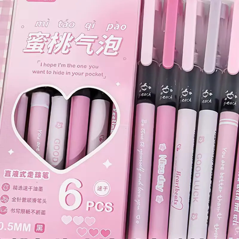Cada pluma combina tonos suaves en rosa y lila con frases positivas que hacen que escribir se sienta bonito, relajante y muy aesthetic. Perfectos para apuntes, journaling, planners o simplemente para darle un upgrade cute a tu escritorio.